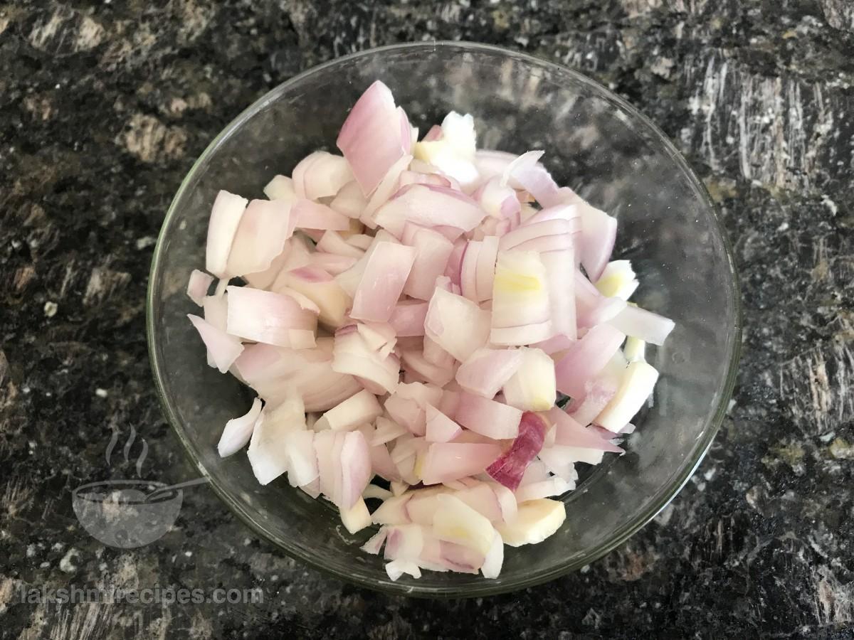 - Gather the ingredients required for making the Pise Huye Chana Masala or Pise Huye Chane Ki Sabji and then finely chop the onion.