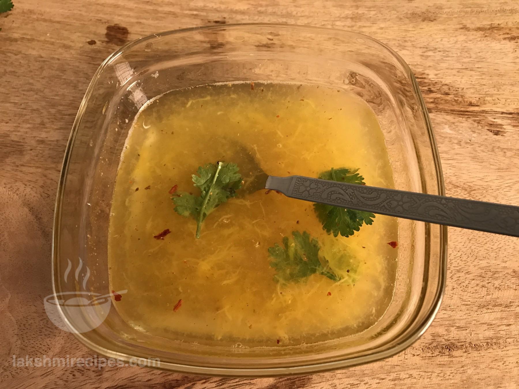 - Now add salt as per taste, 1/2 tea spoon roasted powder of whole red chillis and cumin seeds. Mix all the ingredients together to prepare a uniform solution.