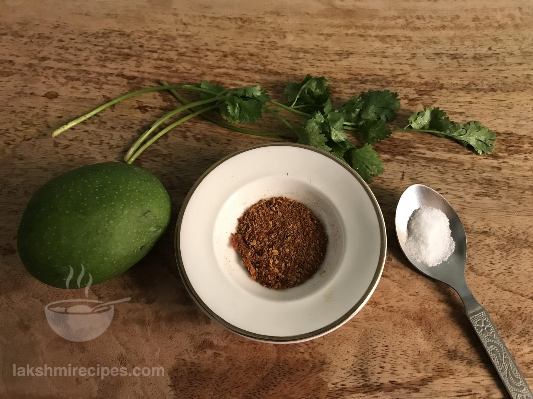 - Then add finely chopped green coriander leaves or mint leaves to the solution and mix well again. The aam panna solution is ready.