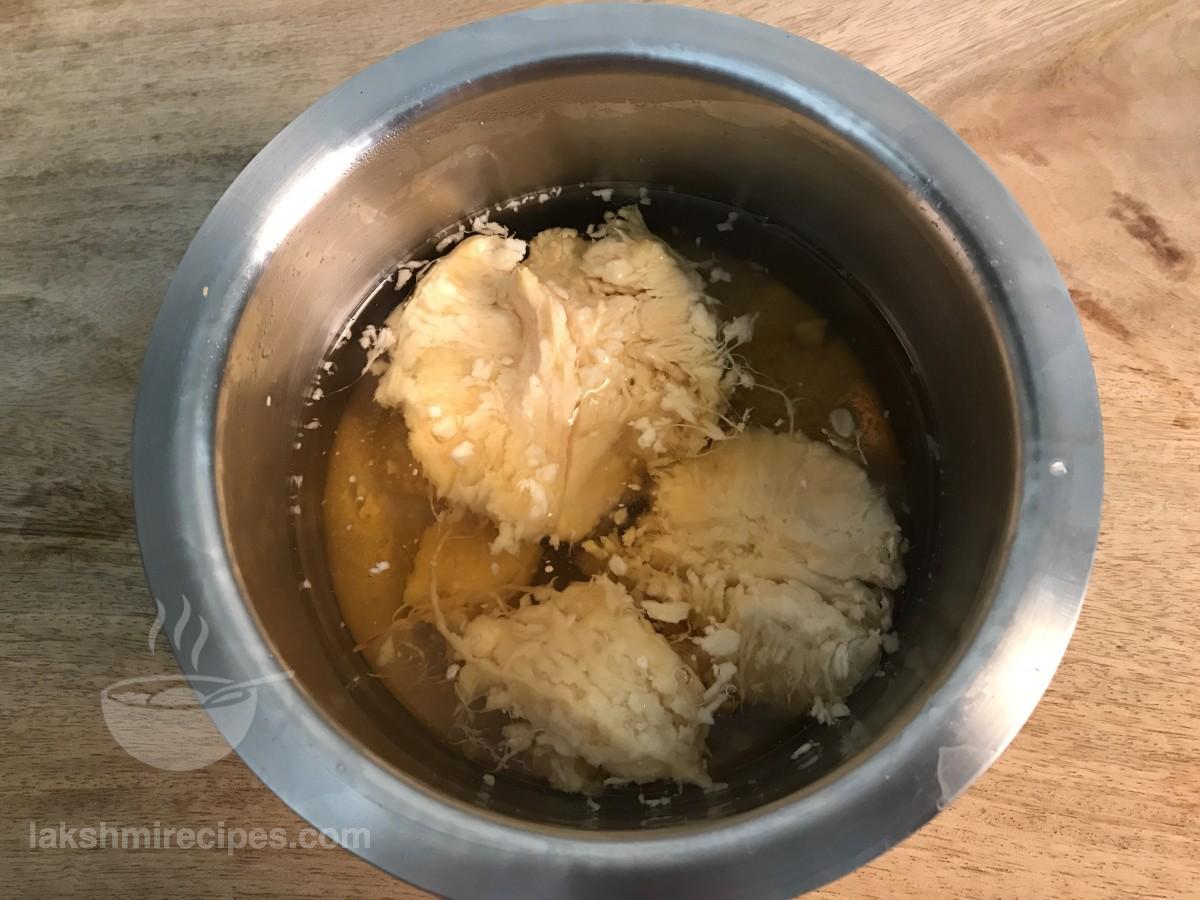 - Soak the pulp in clean drinking ice-cold water for 1 hour. You can also soak and keep in the refrigerator for 1 hour.