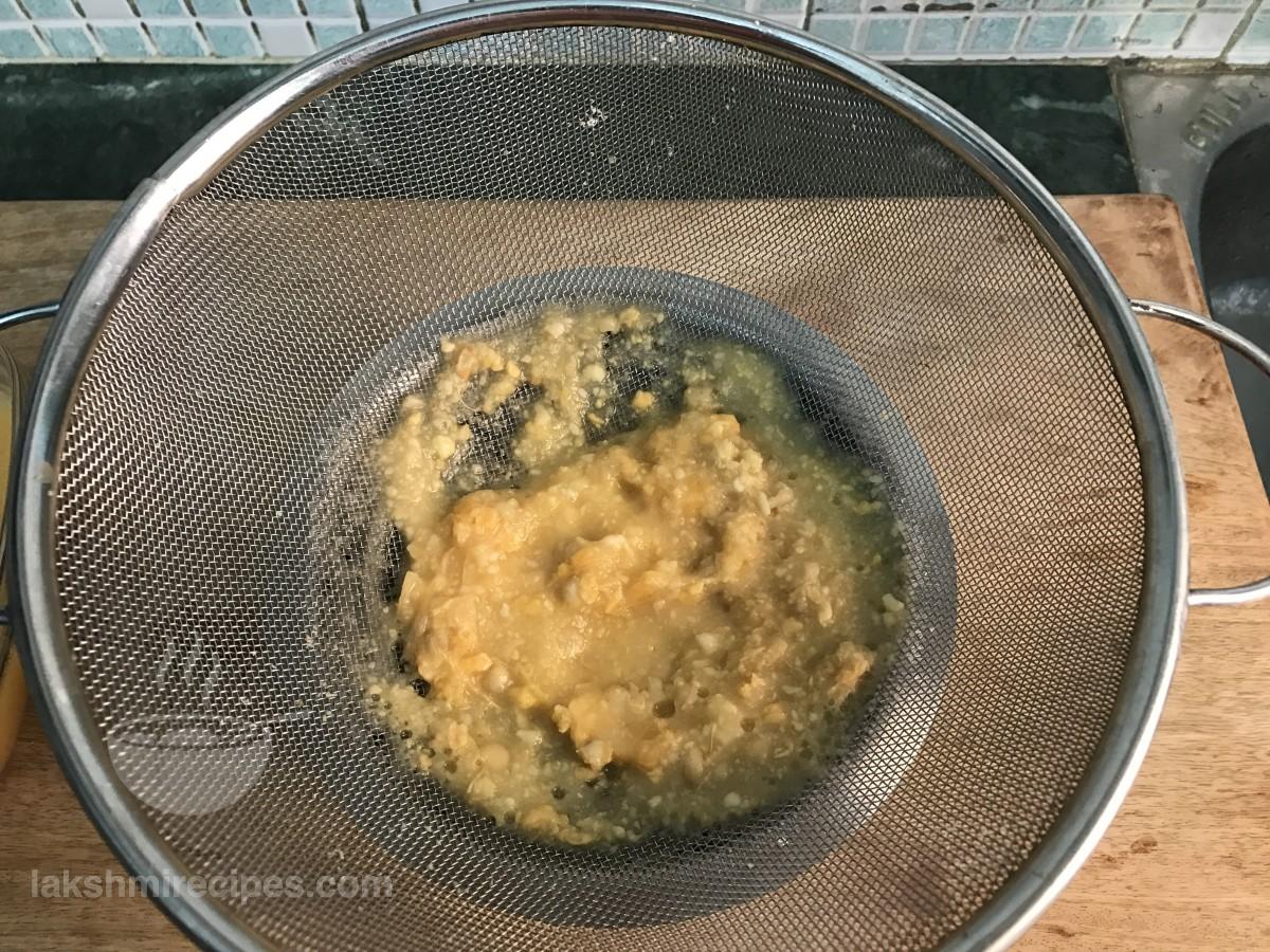 - After 1 hour take out the container in which the bael or wood apple pulp is soaked.