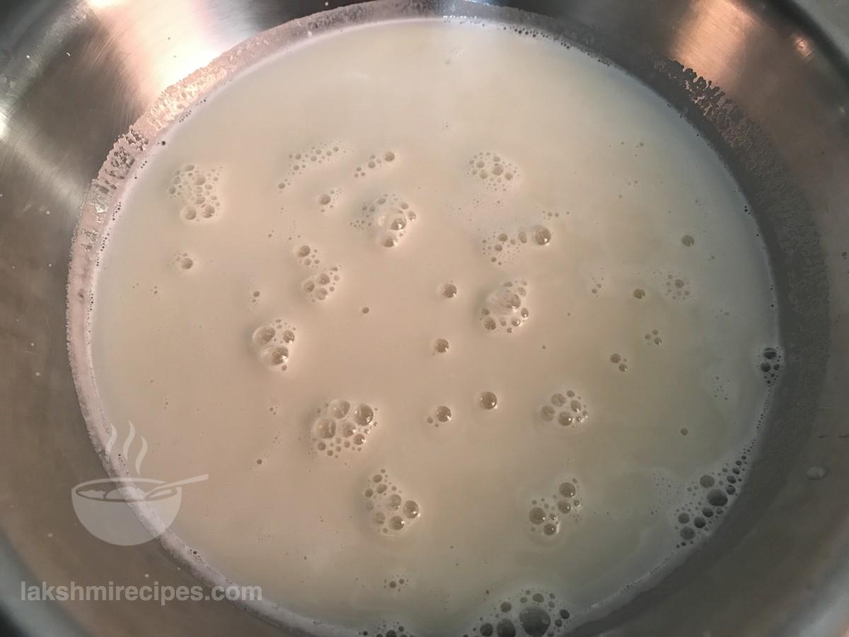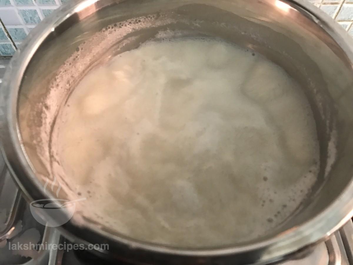 - अब इस मिश्रण को मध्यम आँच पर उबलने के लिए रखें। लगातार चलाते रहें और केवल मध्यम आँच पर ही उबालें।