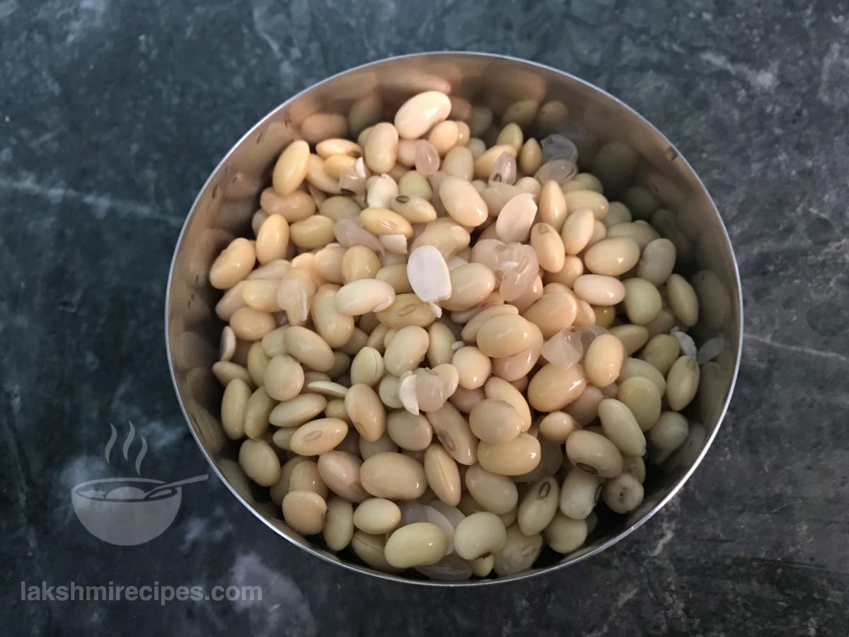 - After soaking for 14-15 hours strain off the water in which they were soaked. Then wash the soybean seeds again with plain water nicely.