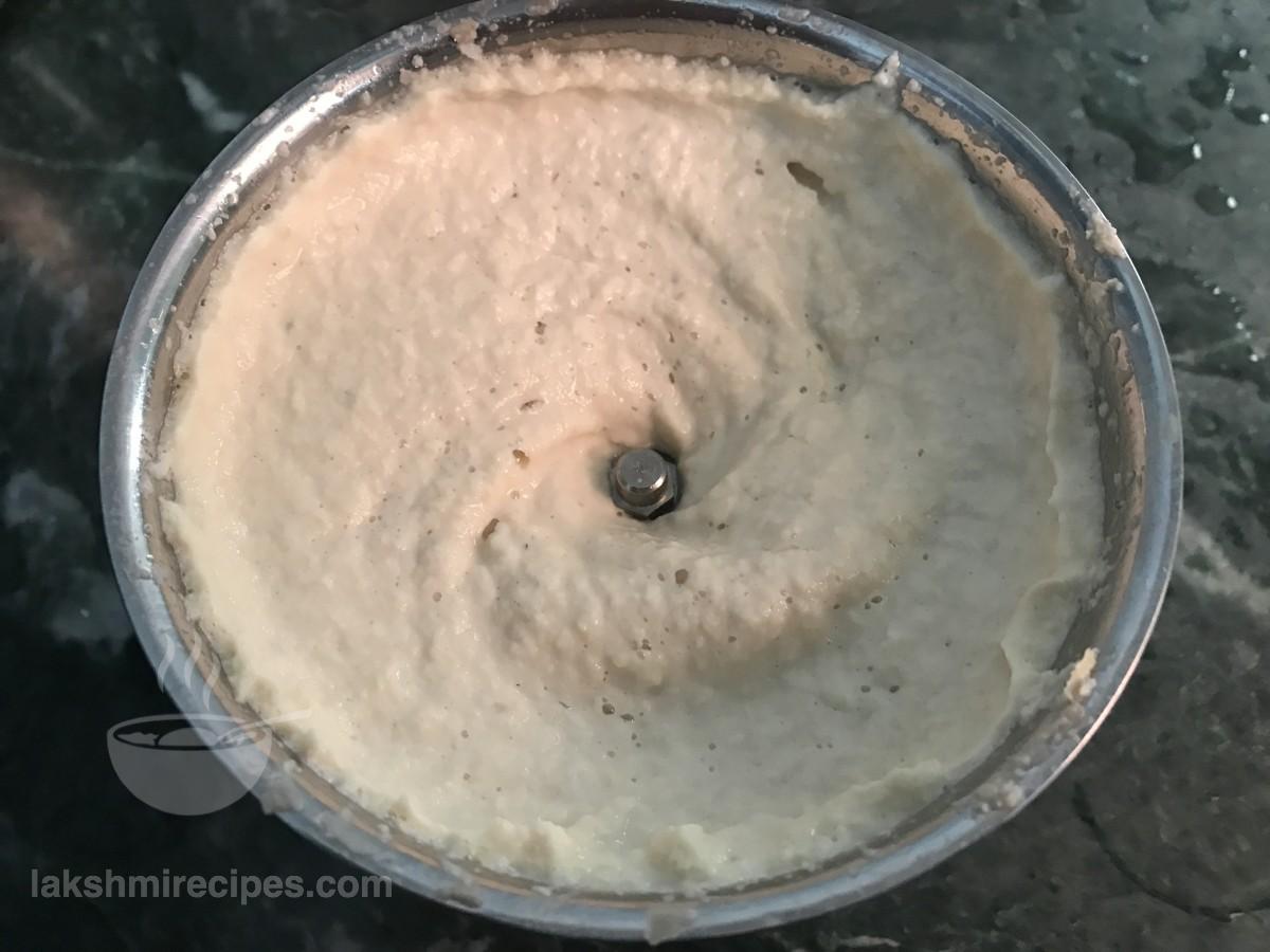 - Now transfer the soaked soybean seeds to a mixer jar and add 1/2 cup water to it. Grind the soaked soybean seeds to form a fine paste.
