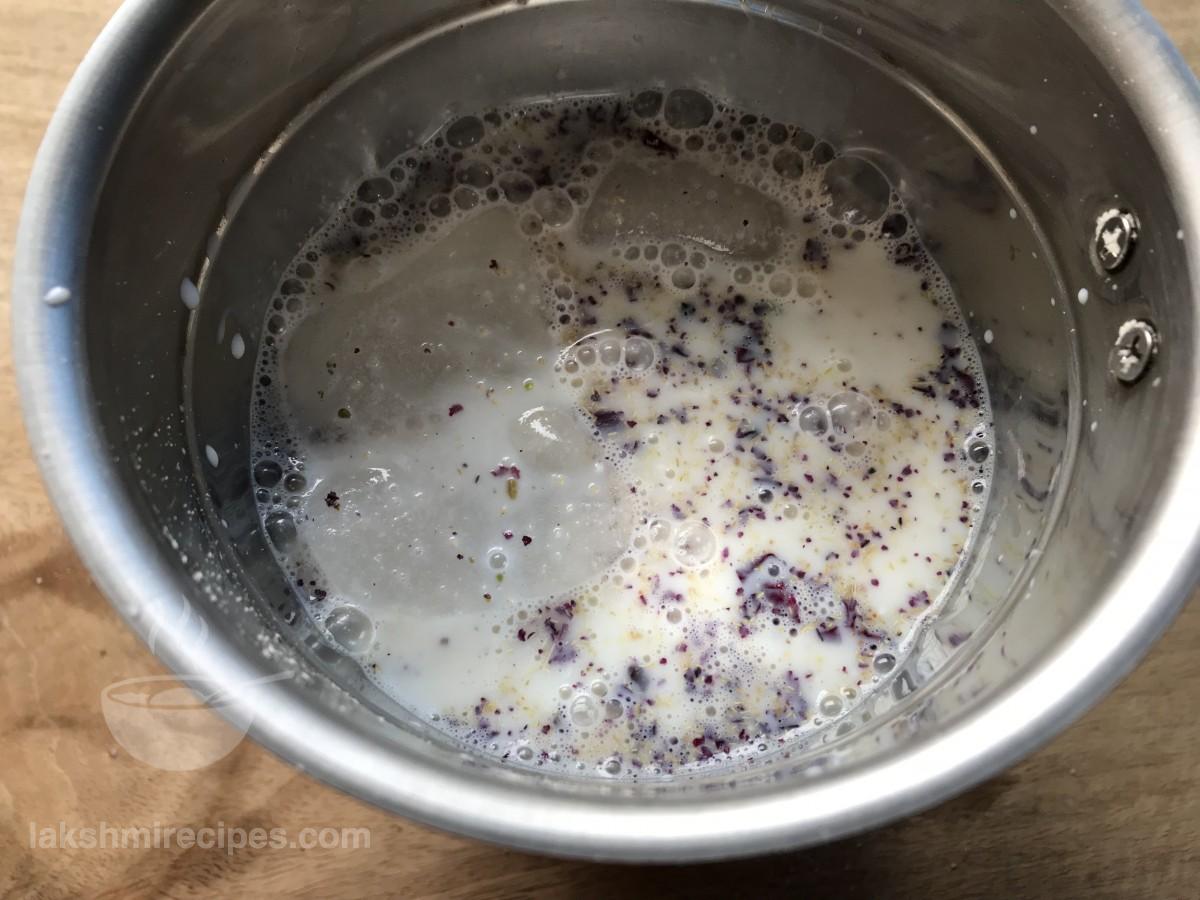 - एक गहरे पतीले में 1 लीटर दूध डालें और उसको उबाल लें। फिर इसे कम से कम 2 घंटे के लिए रेफ्रिजरेटर में ठंडा होने के लिए रख दें।