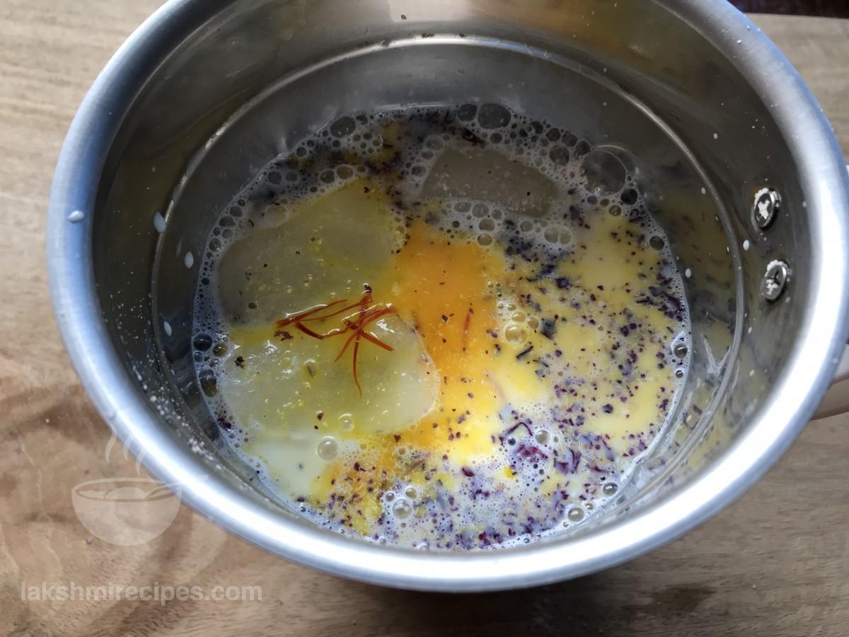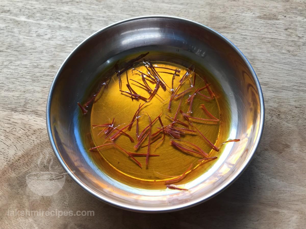 - Saffron strands or kesar - as per requirement, soaked in 2-3 table spoon water