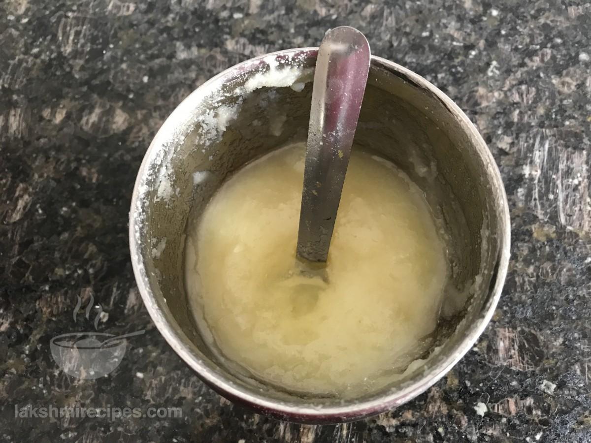 - Now heat a frying pan and add 1 table spoon ghee to it.
