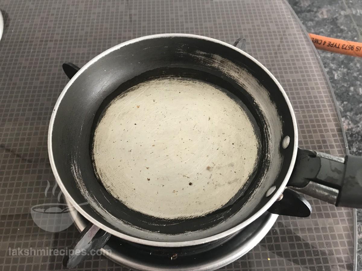 - अब एक फ्राइंग पैन गरम करें और इसमें 1 बड़ा चम्मच घी डालें।