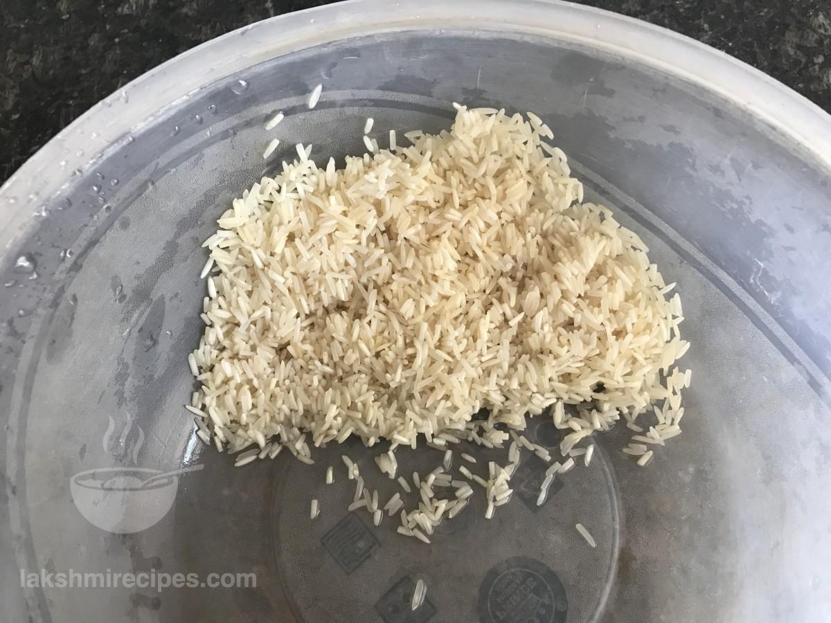 - बासमती चावल को साफ पानी से 2-3 बार धोएं, और अतिरिक्त पानी को निकाल कर साफ बासमती चावल को अलग रखें।