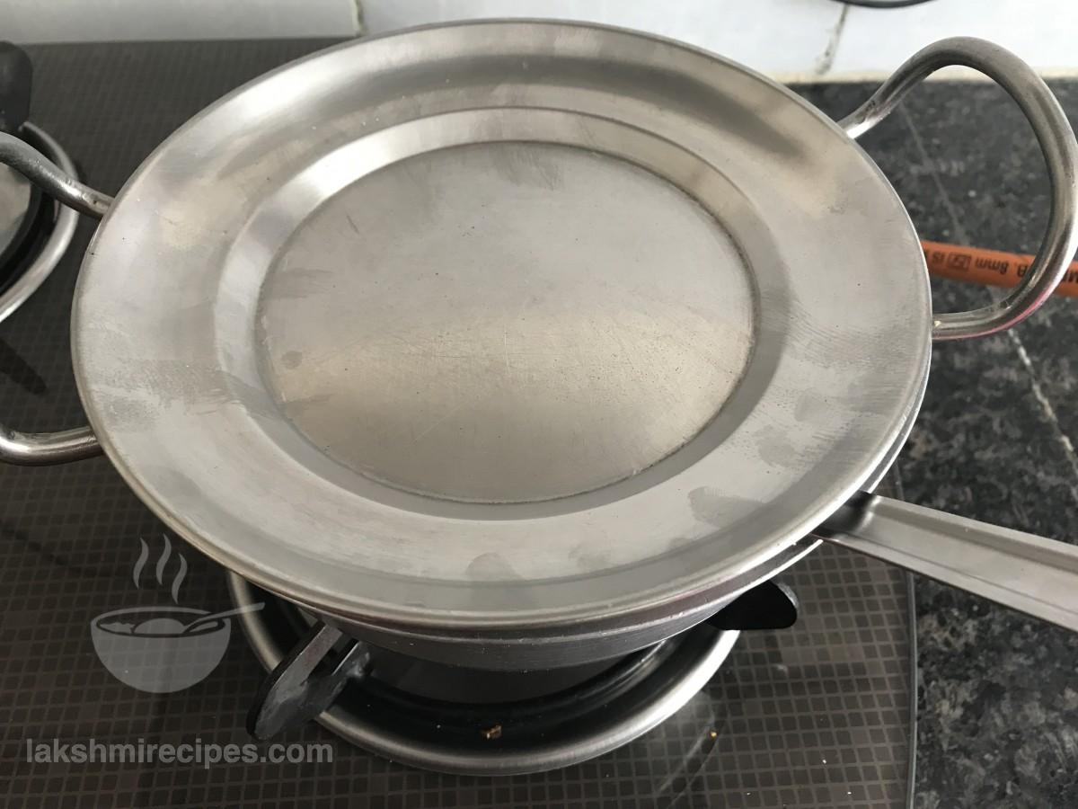 - Cover the kadhai with a lid and cook the ingredients for 20 minutes. Remove the lid and check at regular intervals to ensure that the water hasn't dried up while cooking.