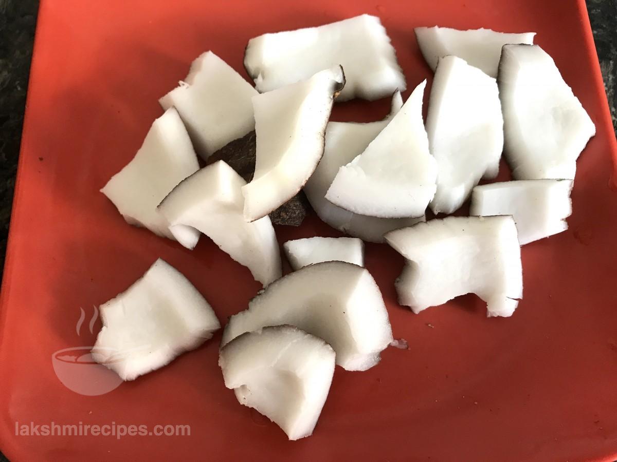 - You can use the coconut milk available in market and you can also prepare fresh coconut milk at home. For making fresh coconut milk take fresh coconut and seperate it from the shell.