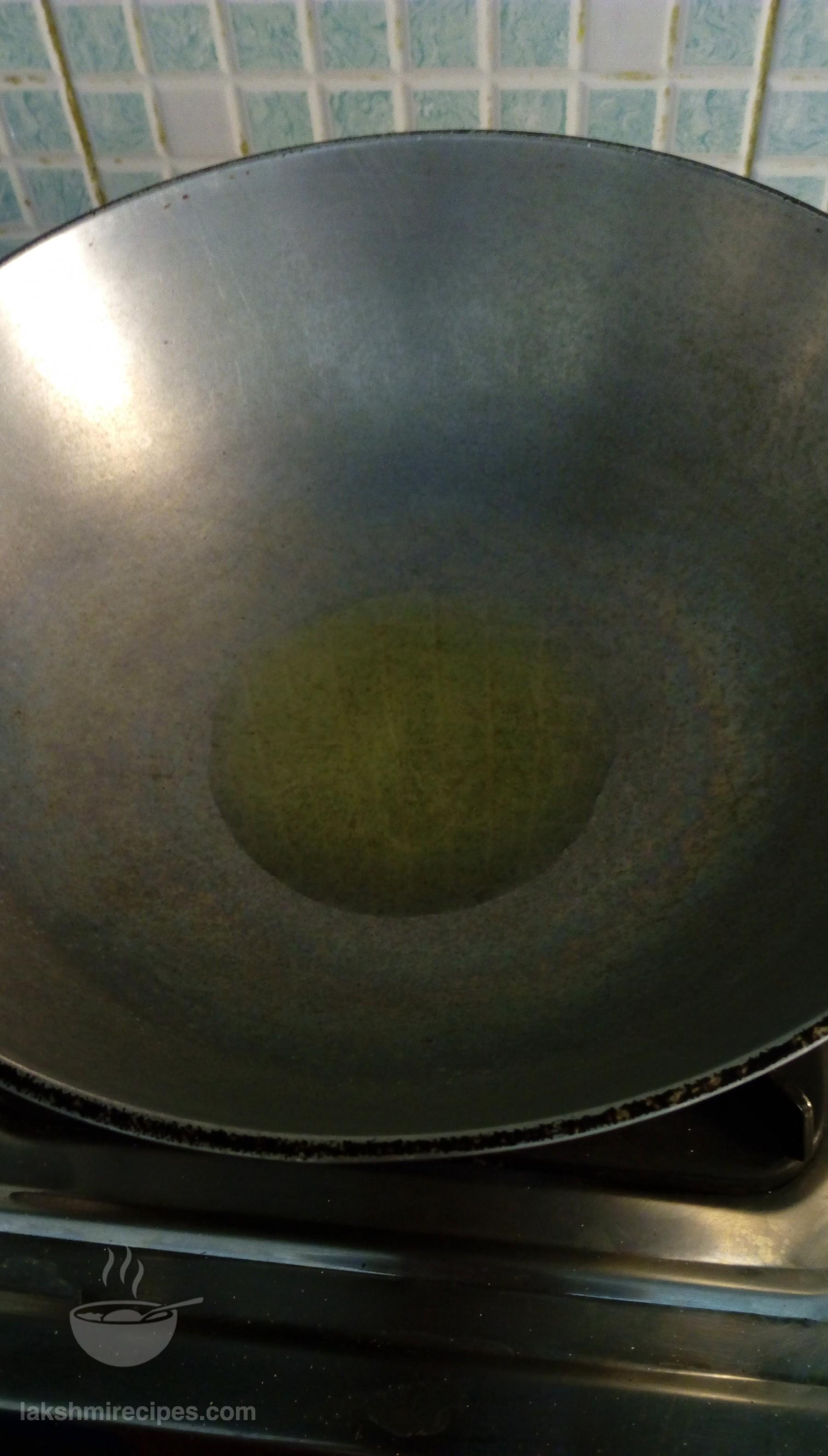 - Now heat 1 table spoon refined oil in a kadhai and add the peanuts (moongfali dana) to roast then till they turn crispy red. Then trasfer them to a plate to be used later.