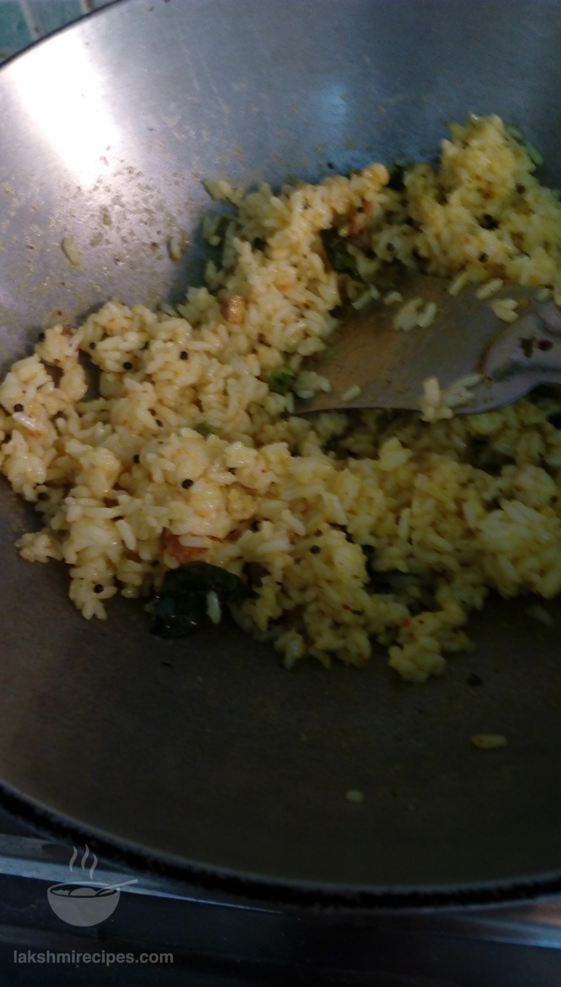 - Mix all the ingredients and the lemon rice is ready to be served hot. (This dish can be eaten hot or can be carried in lunch boxes to be eaten later)