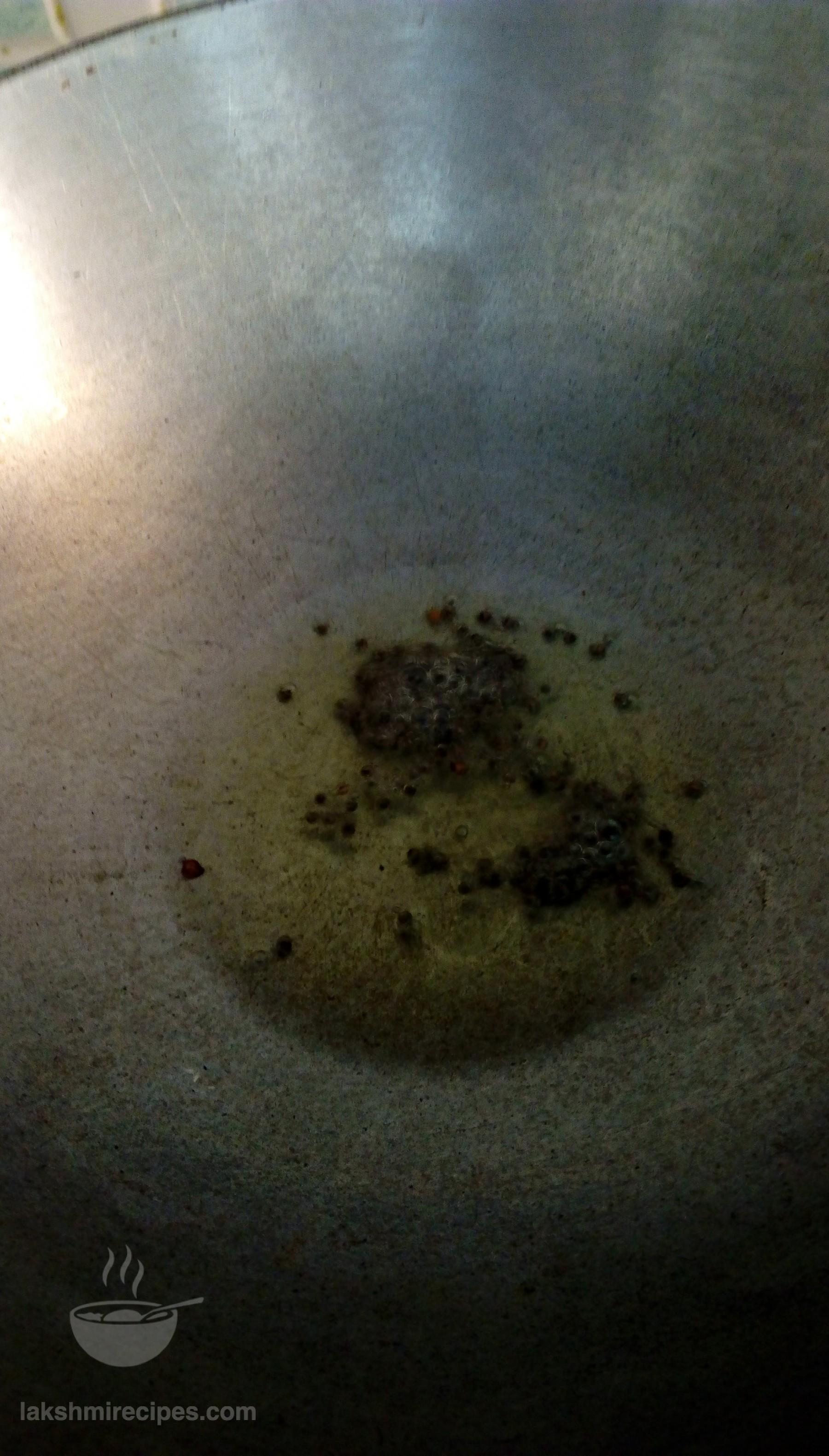 - Then add 1 tea spoon black mustard seeds (rai) and curry leaves (kari patta) to it.