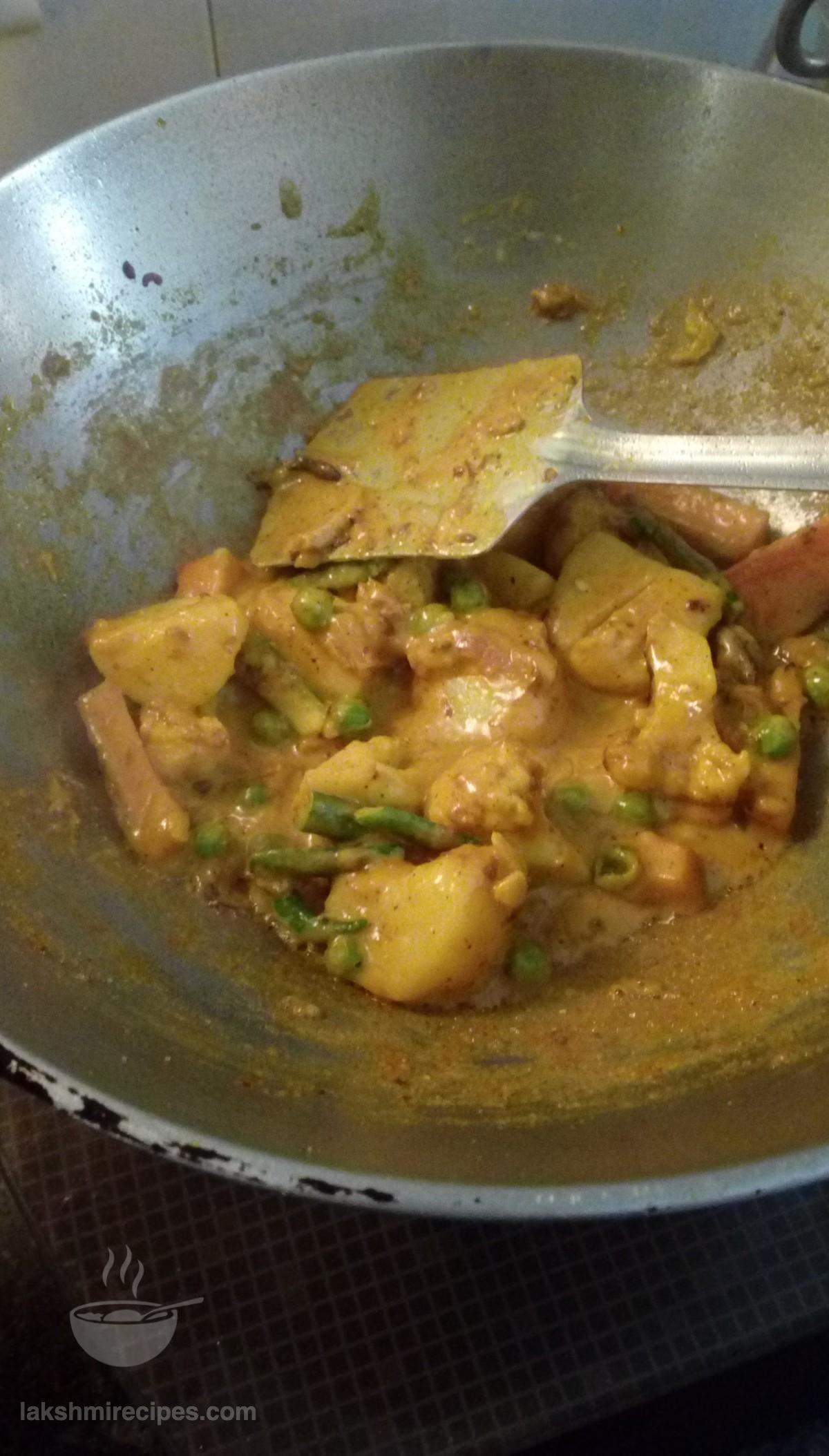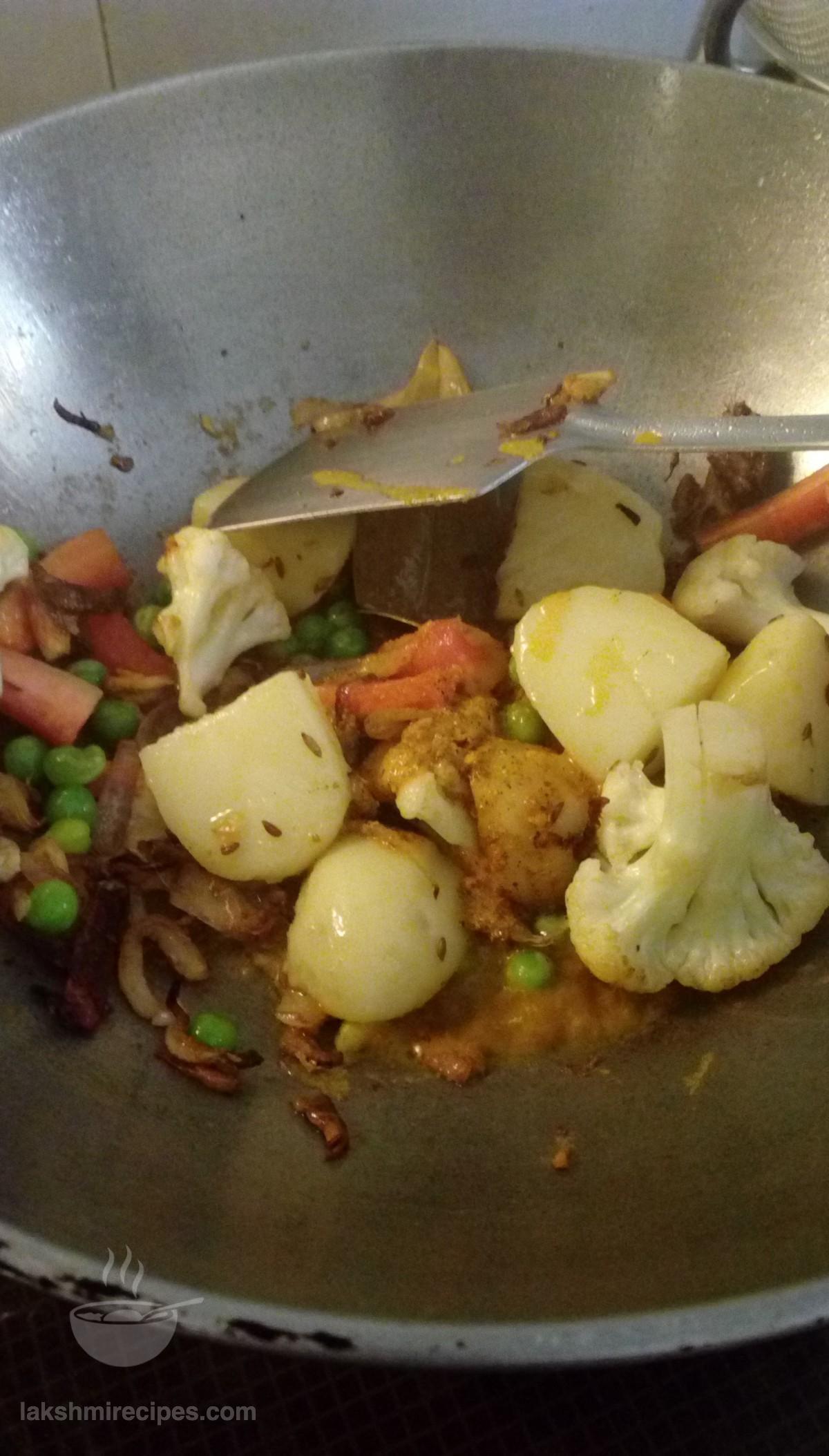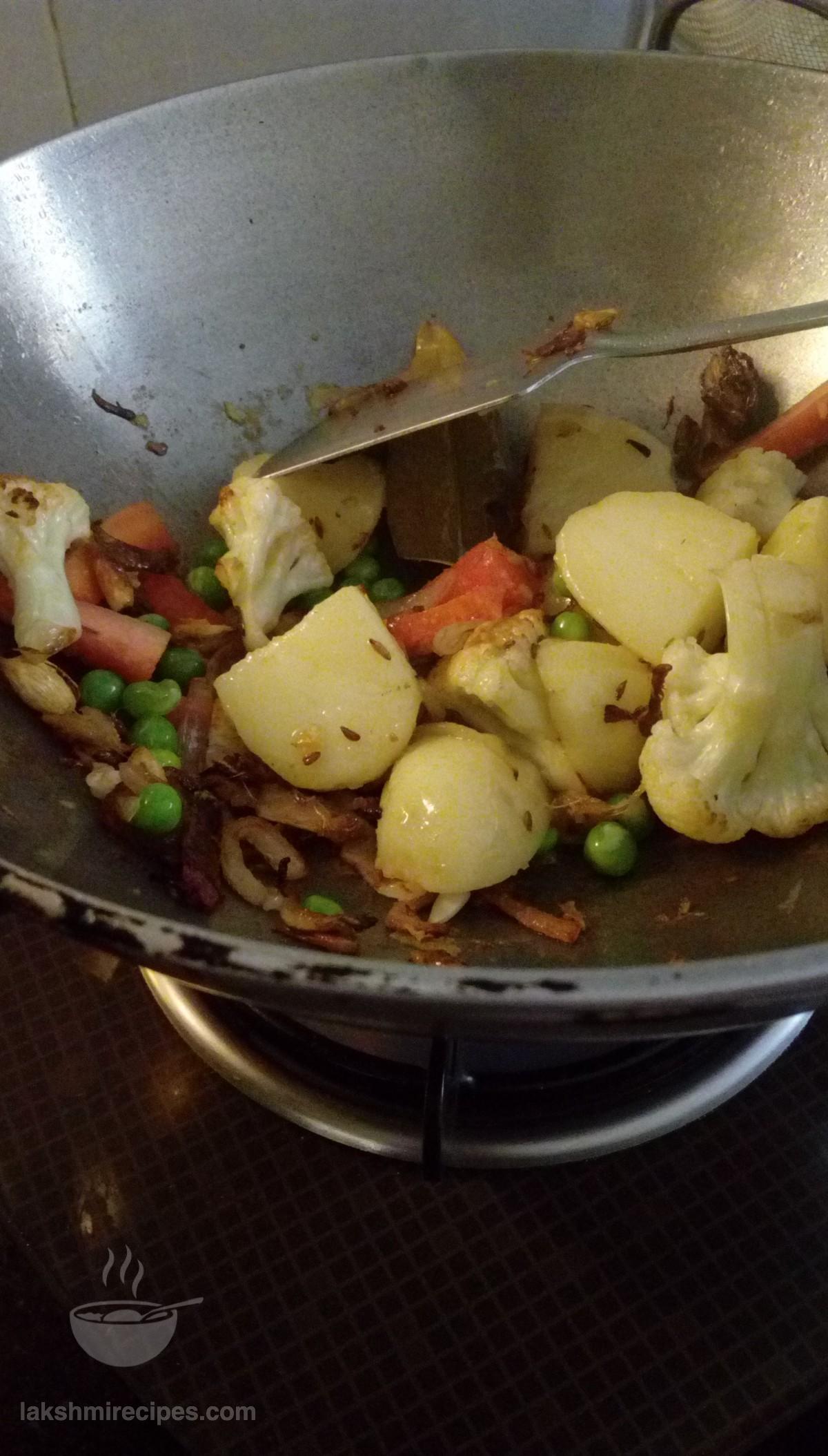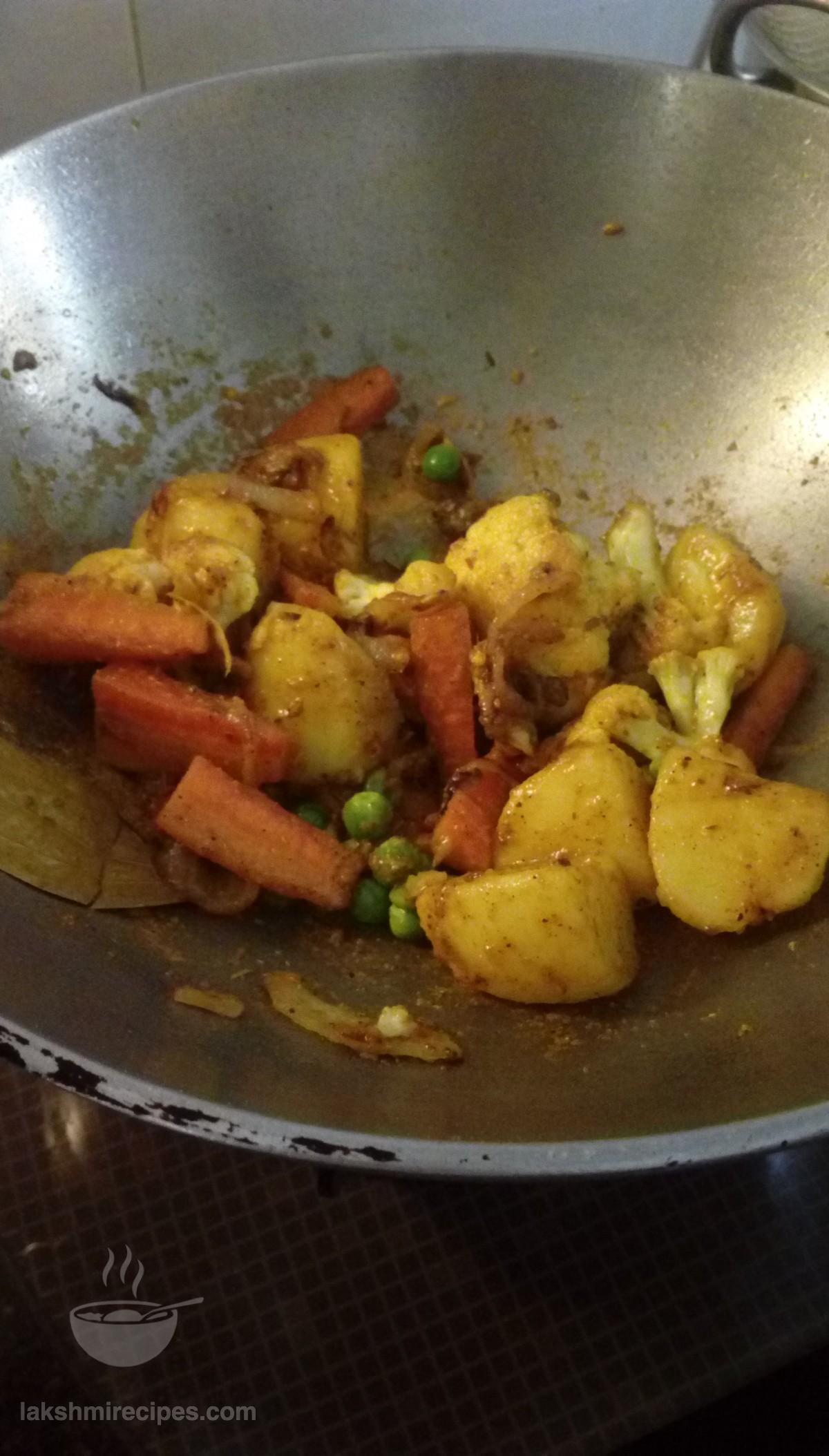 - Now remove the lid of the kadhai in which the vegetables were cooking and check if they are partially cooked.