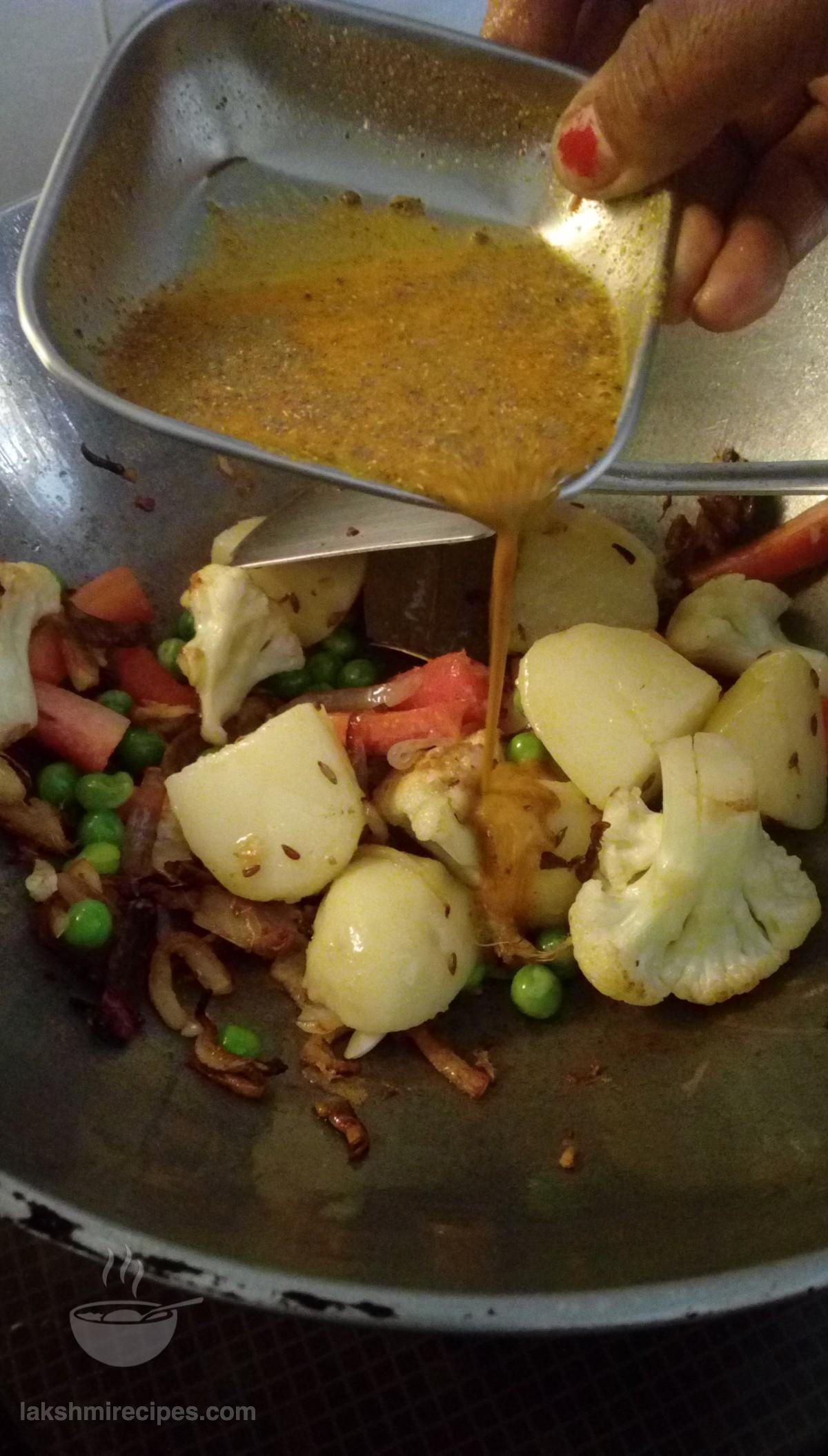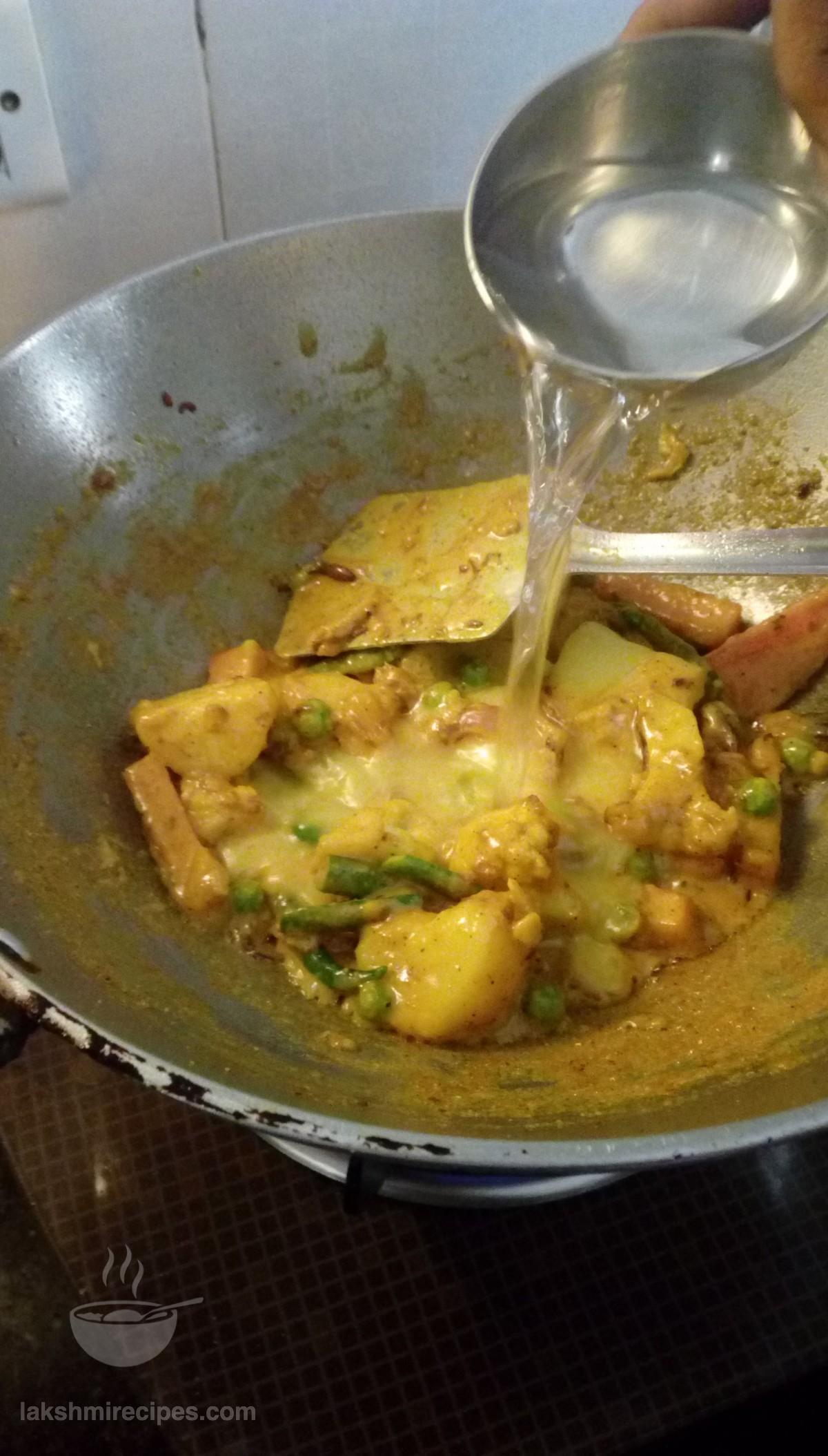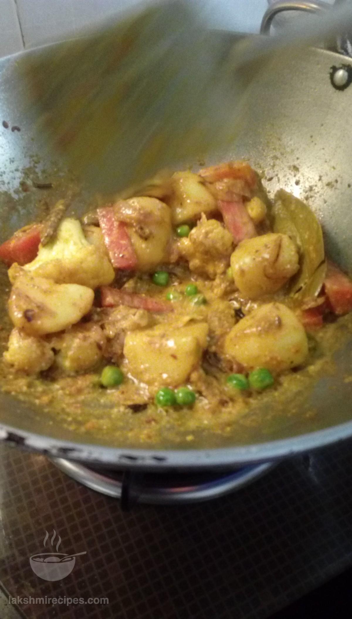- Now remove the lid of the kadhai in which the vegetables were cooking and check if they are partially cooked.