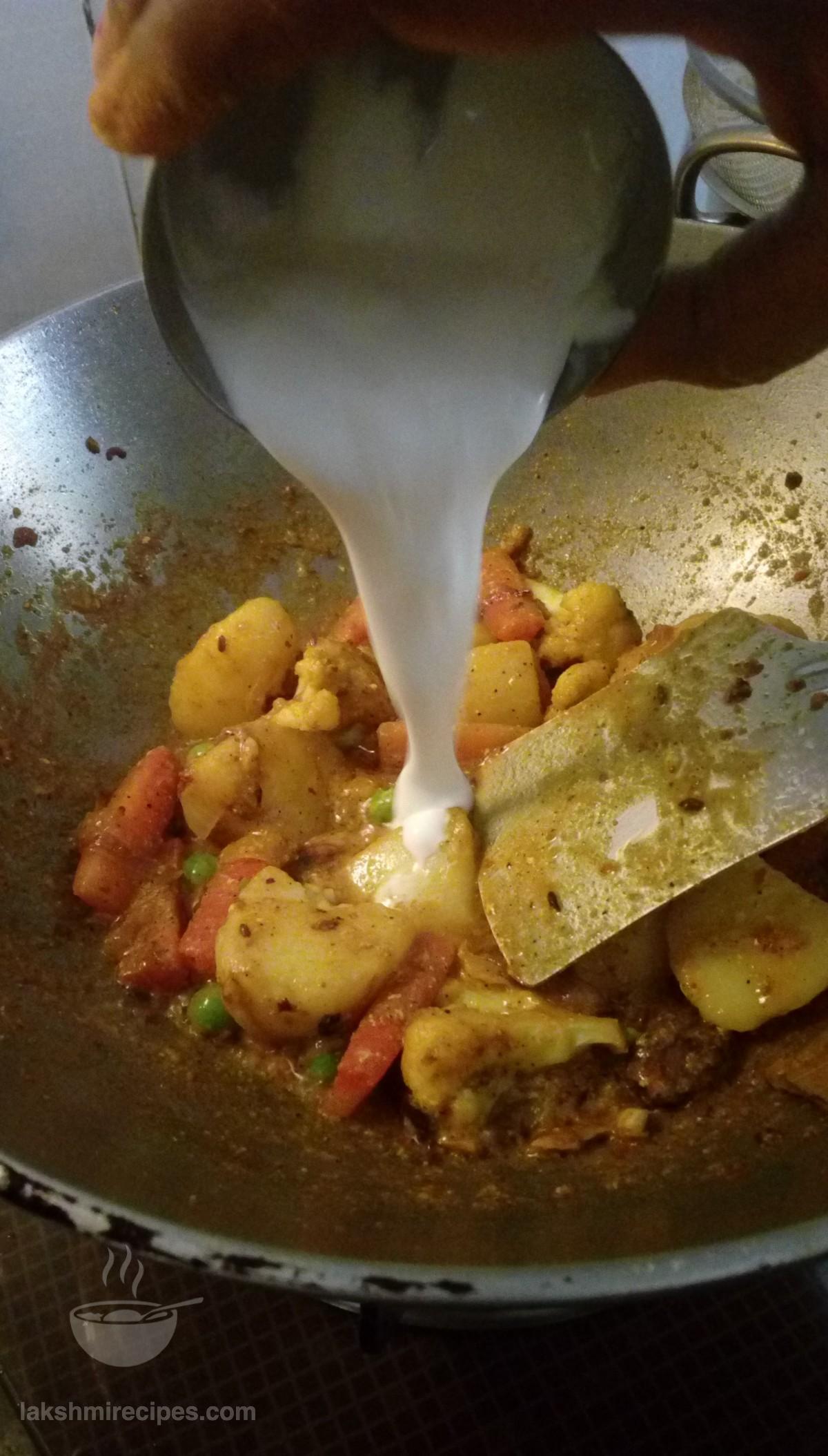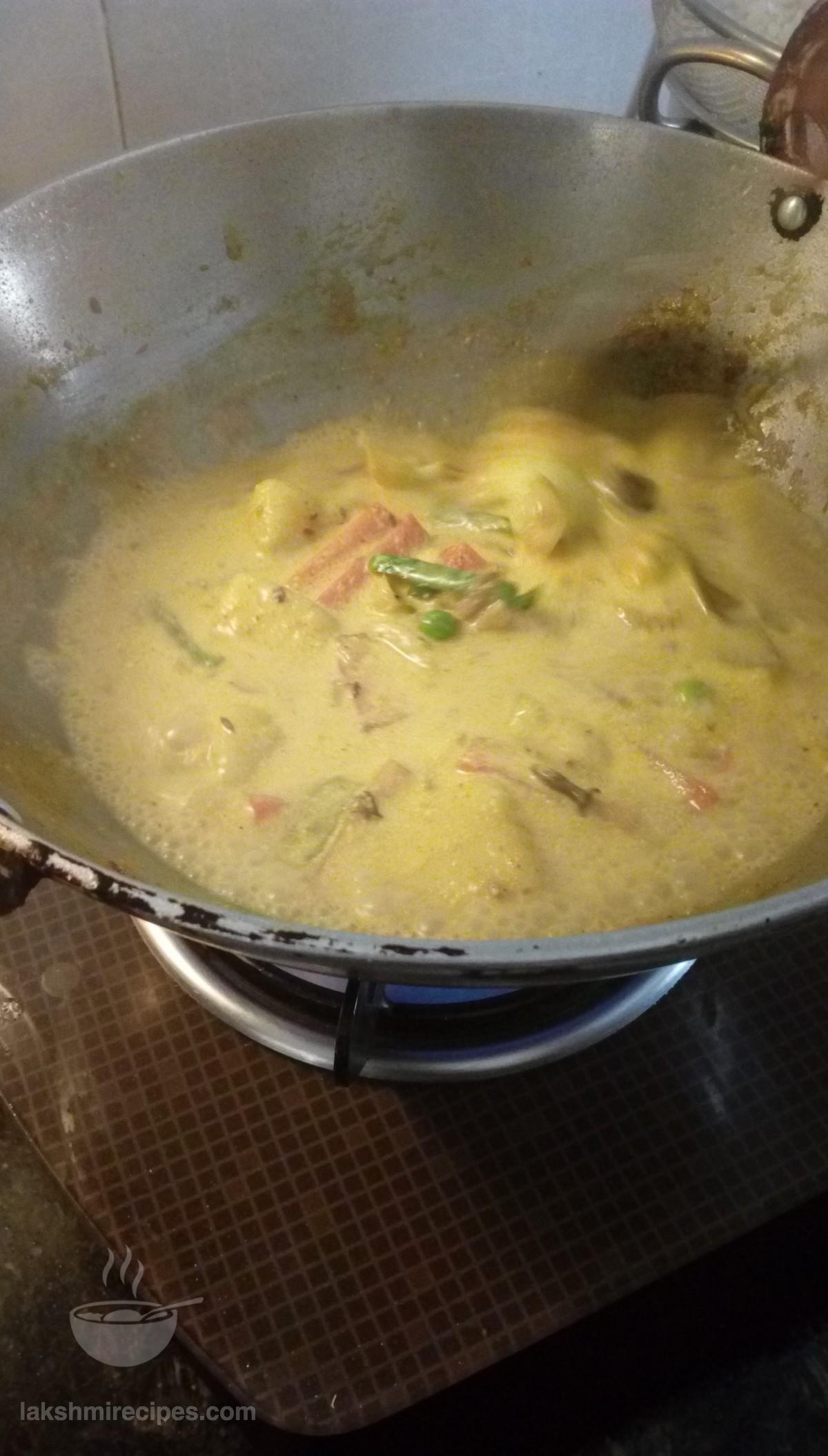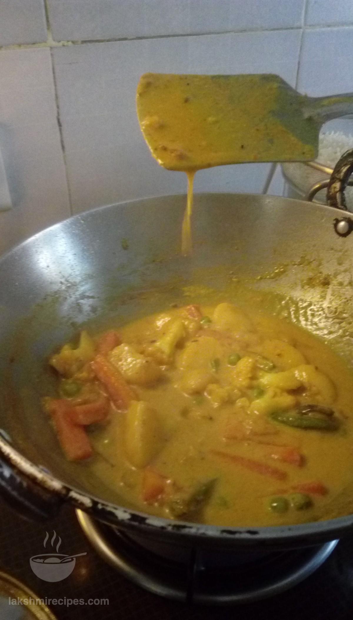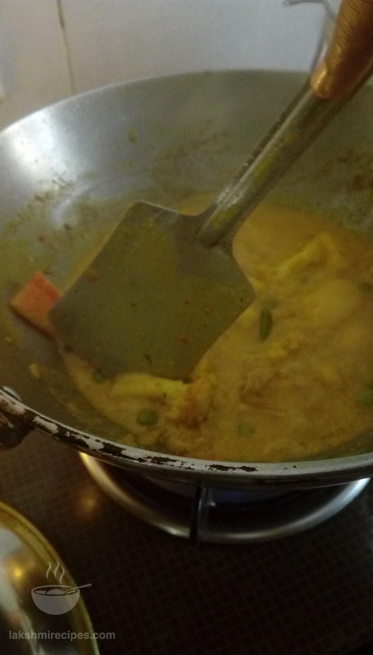 - Now remove the lid of the kadhai in which the vegetables were cooking and check if they are partially cooked.