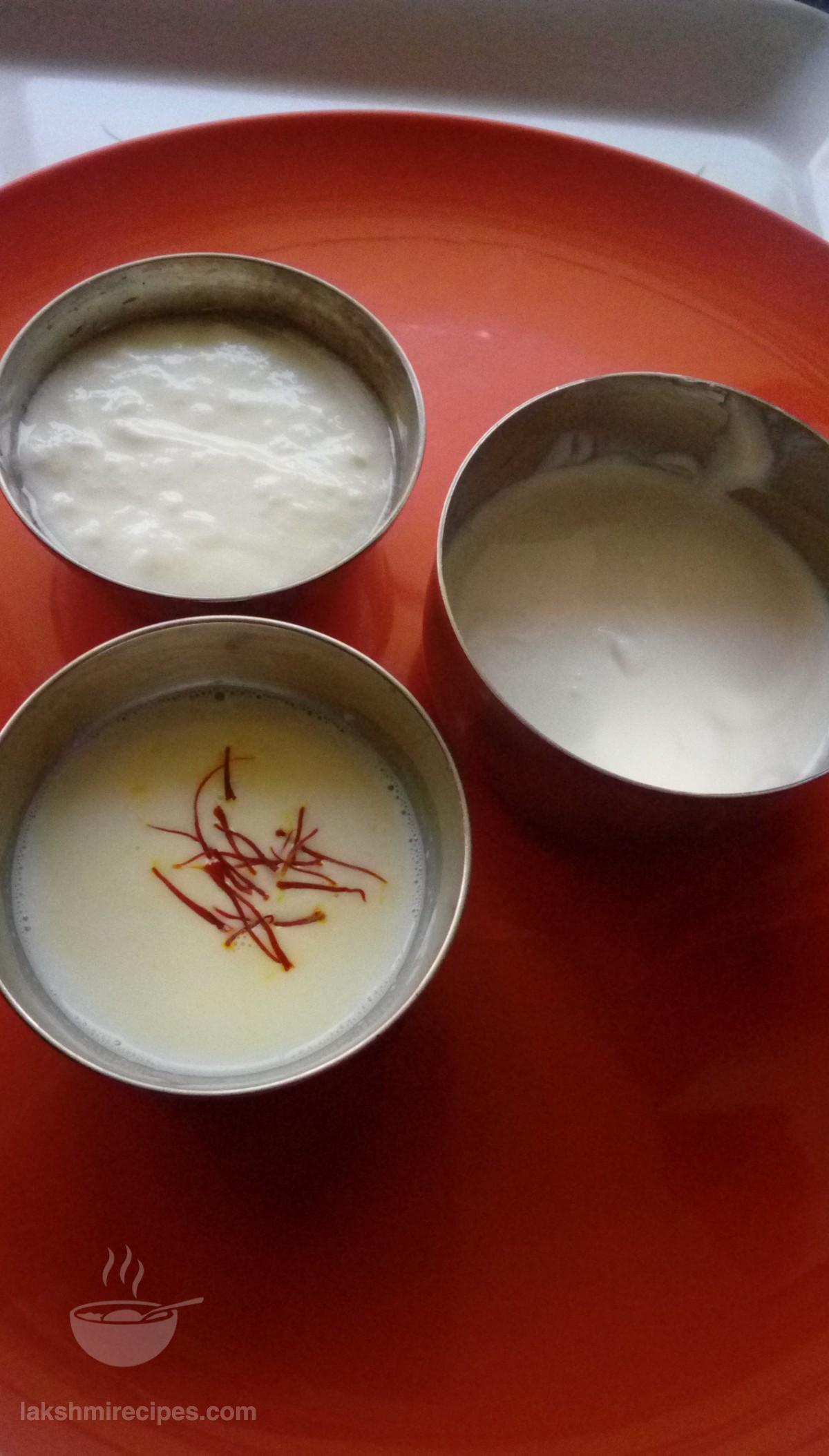 - Saffron strands - 1 pinch, soaked 1/2 small cup milk; (केसर वाला दूध)