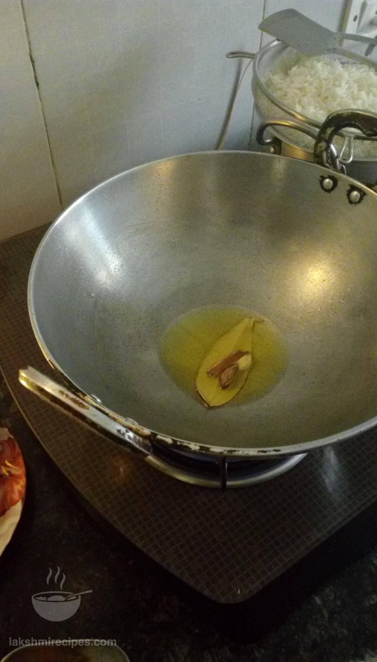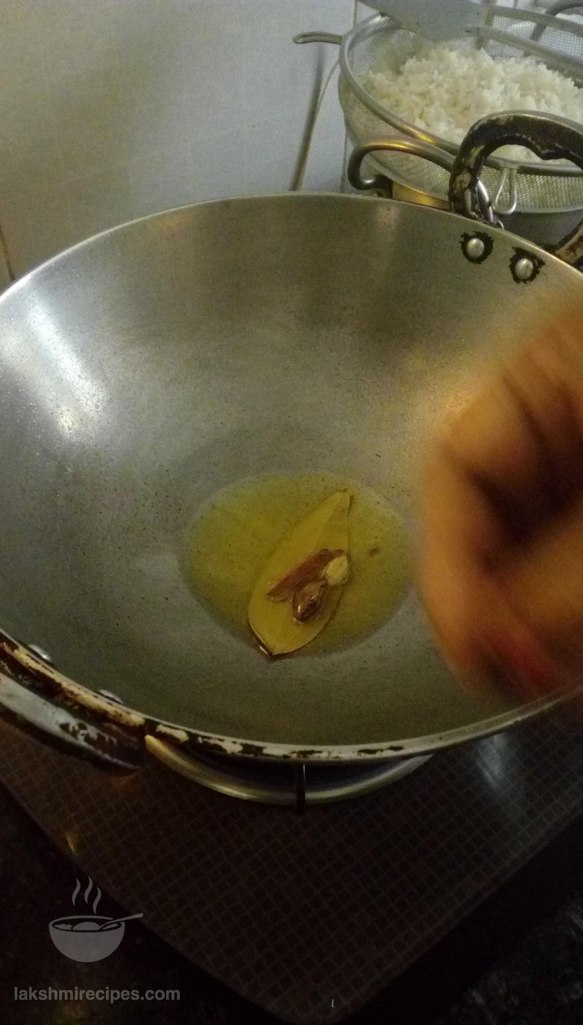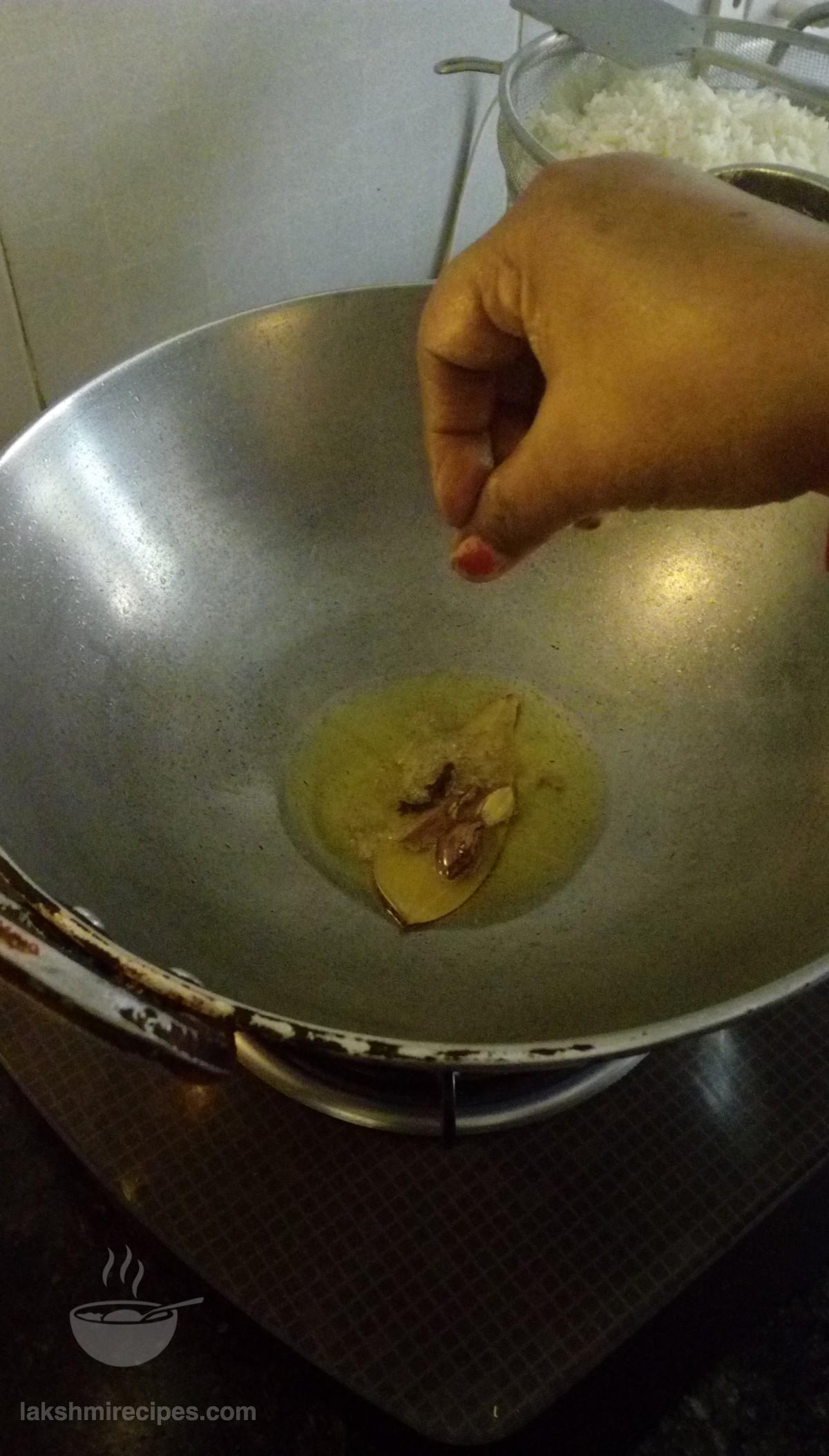 - जब घी गरम होजाए, तो उसमें तेज पत्ता, लौंग, बड़ी इलायची, छोटी इलायची, दालचीनी और जीरा डालें।