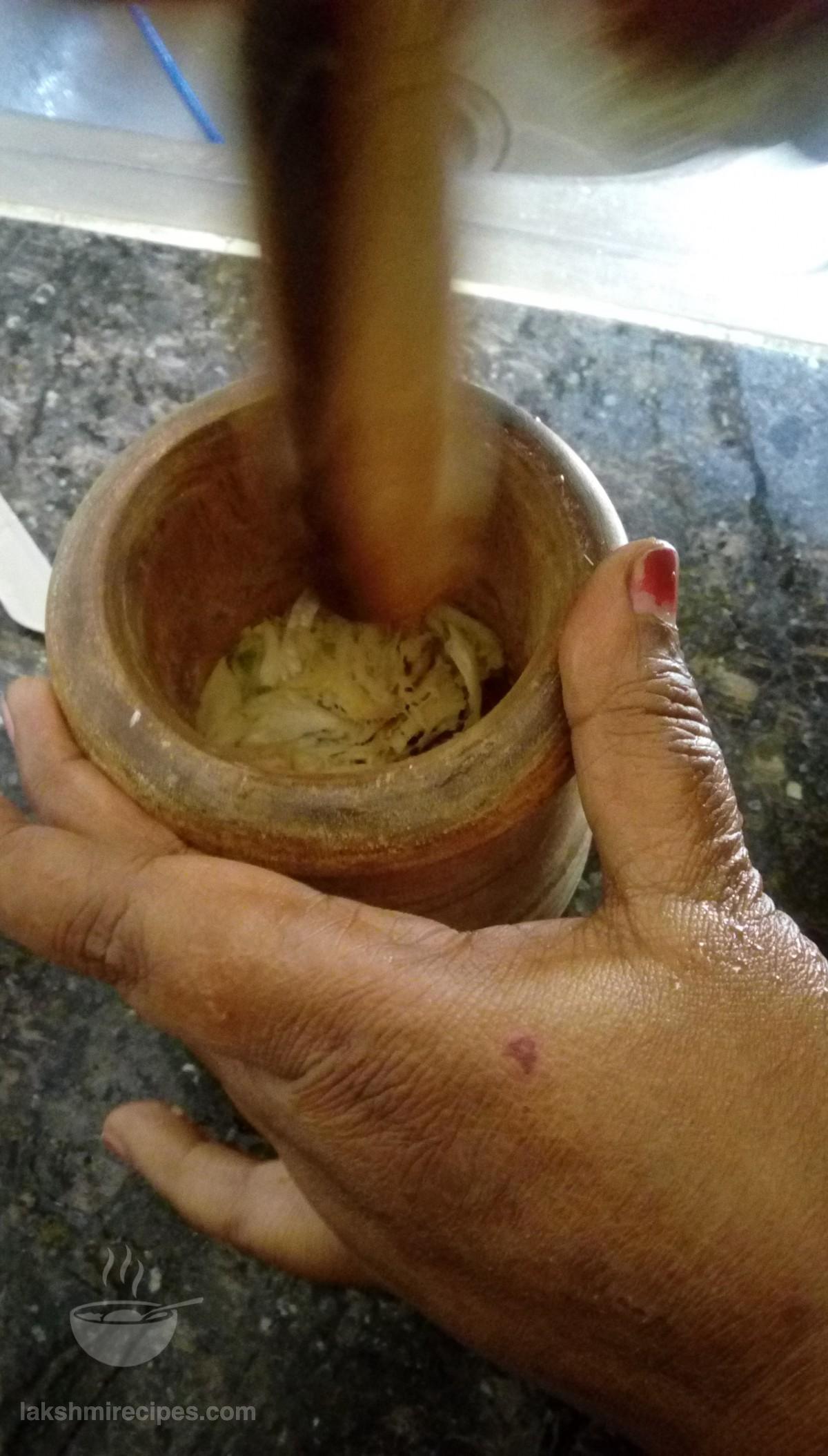 - जब तक चावल पक रहा है, तब तक आप लहसुन की पंखुड़ी और अदरक के टुकड़े को कूट कर पेस्ट बना लें।