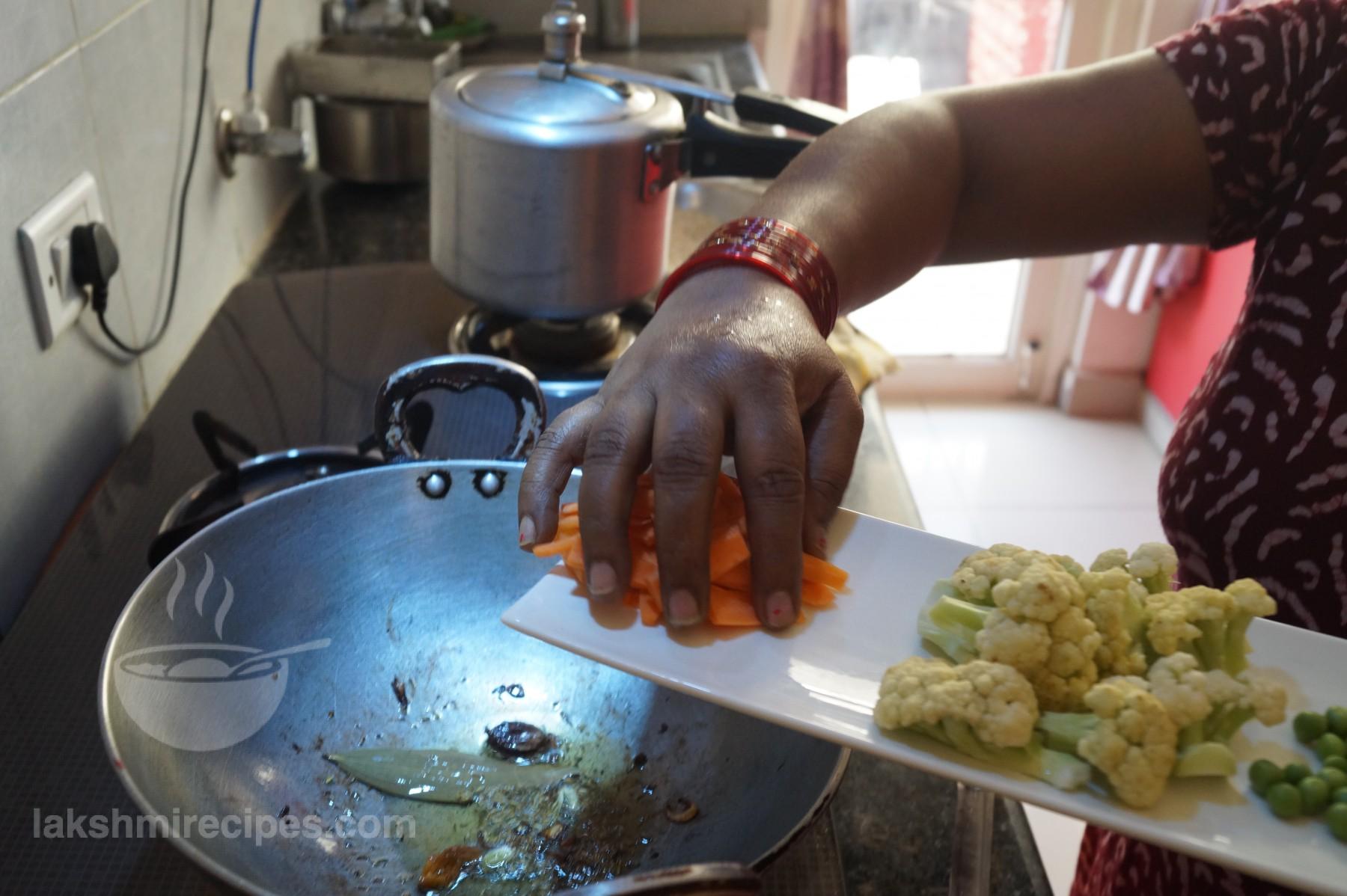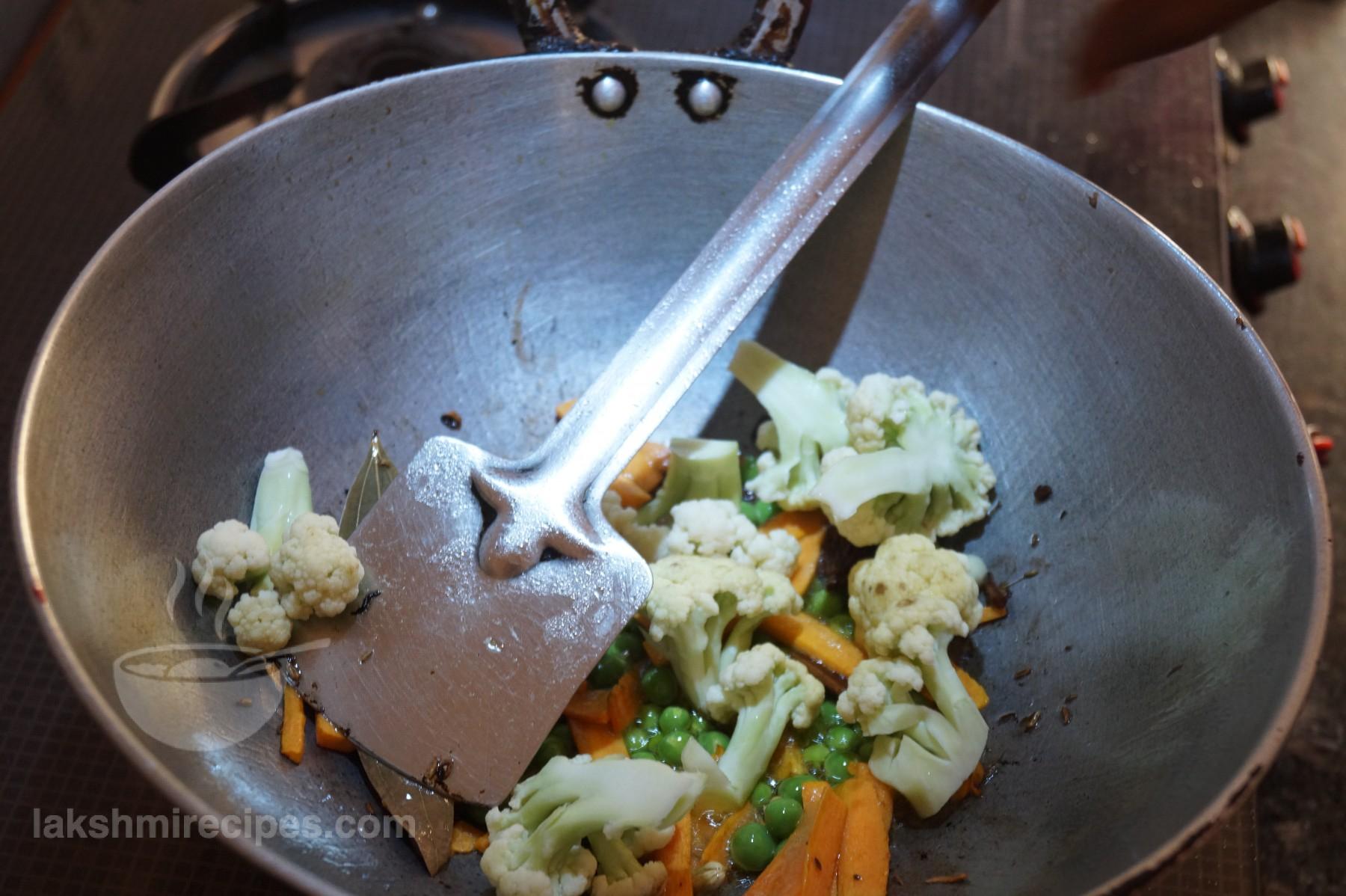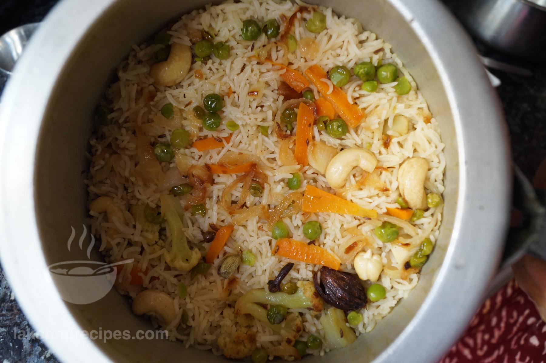 Veg pulao is a delicious version of steamed rice and stir fried vegetables cooked together with a few spices. It is often served as a complete meal. Learn how to make this dish easily with step by step photos and detailed recipe given below: