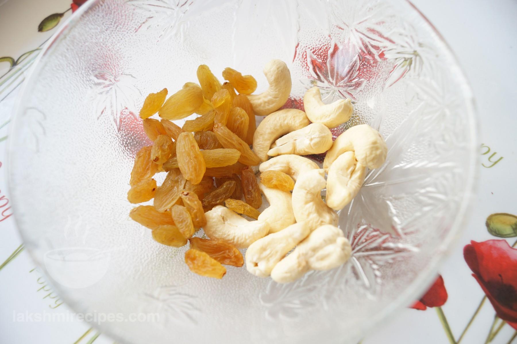 - Add more salt as per taste, dry fruits (kaju, kismis) to the kadhai and mix.
