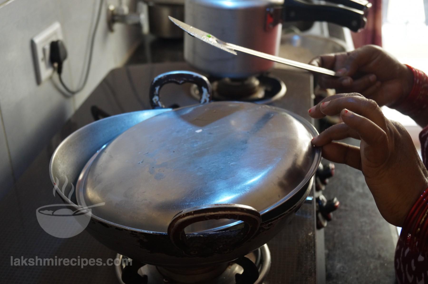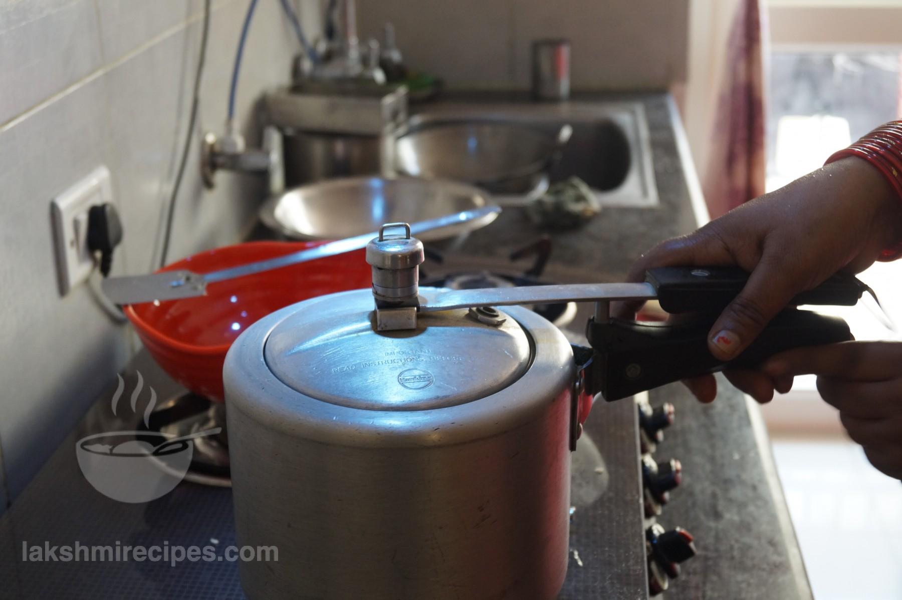 - Close the lid and cook for 1 whistle and then turn off the flame.