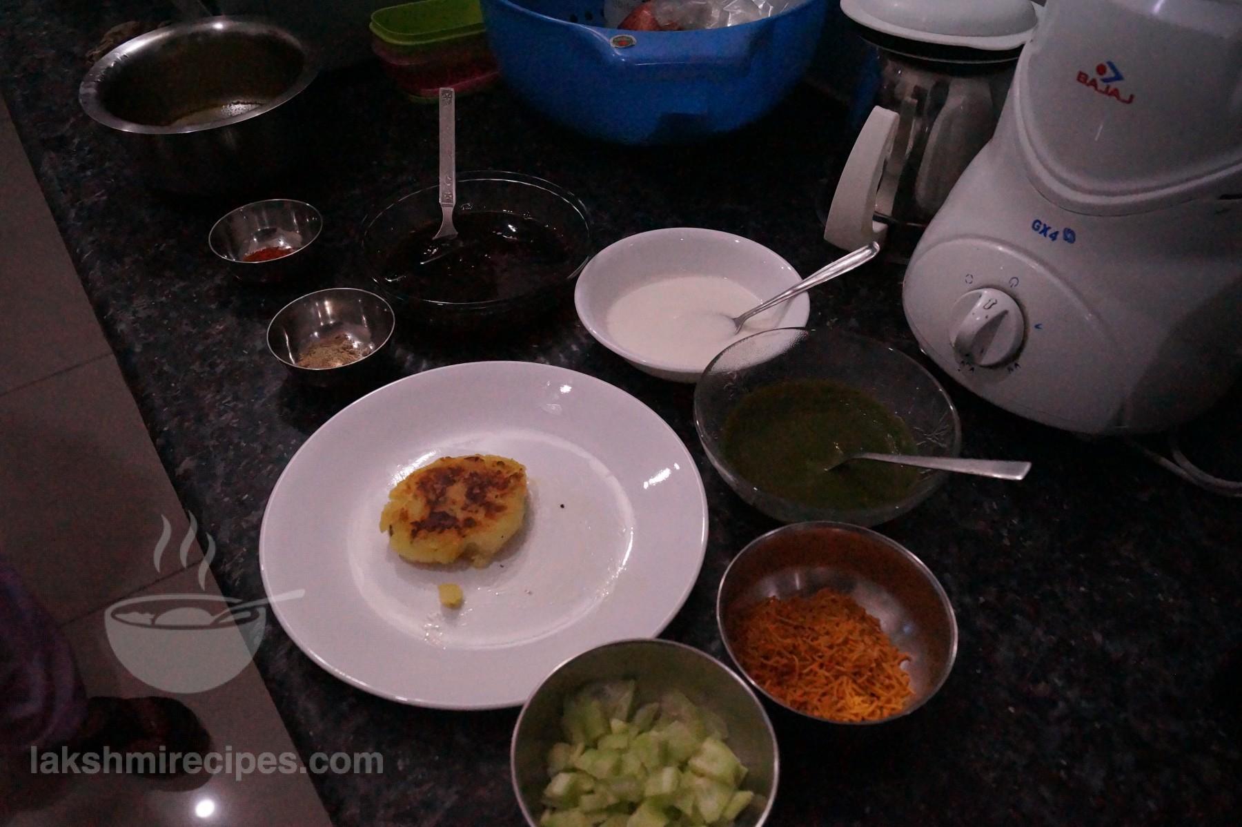(Tips: 1. Remember not to add any water while making the potato mixture. 2. Fry the tikkis till golden red, don't over-fry the tikkis or else they will turn black. 3. Add sugar to the curd (dahi), if sweetened curd is preferred. )