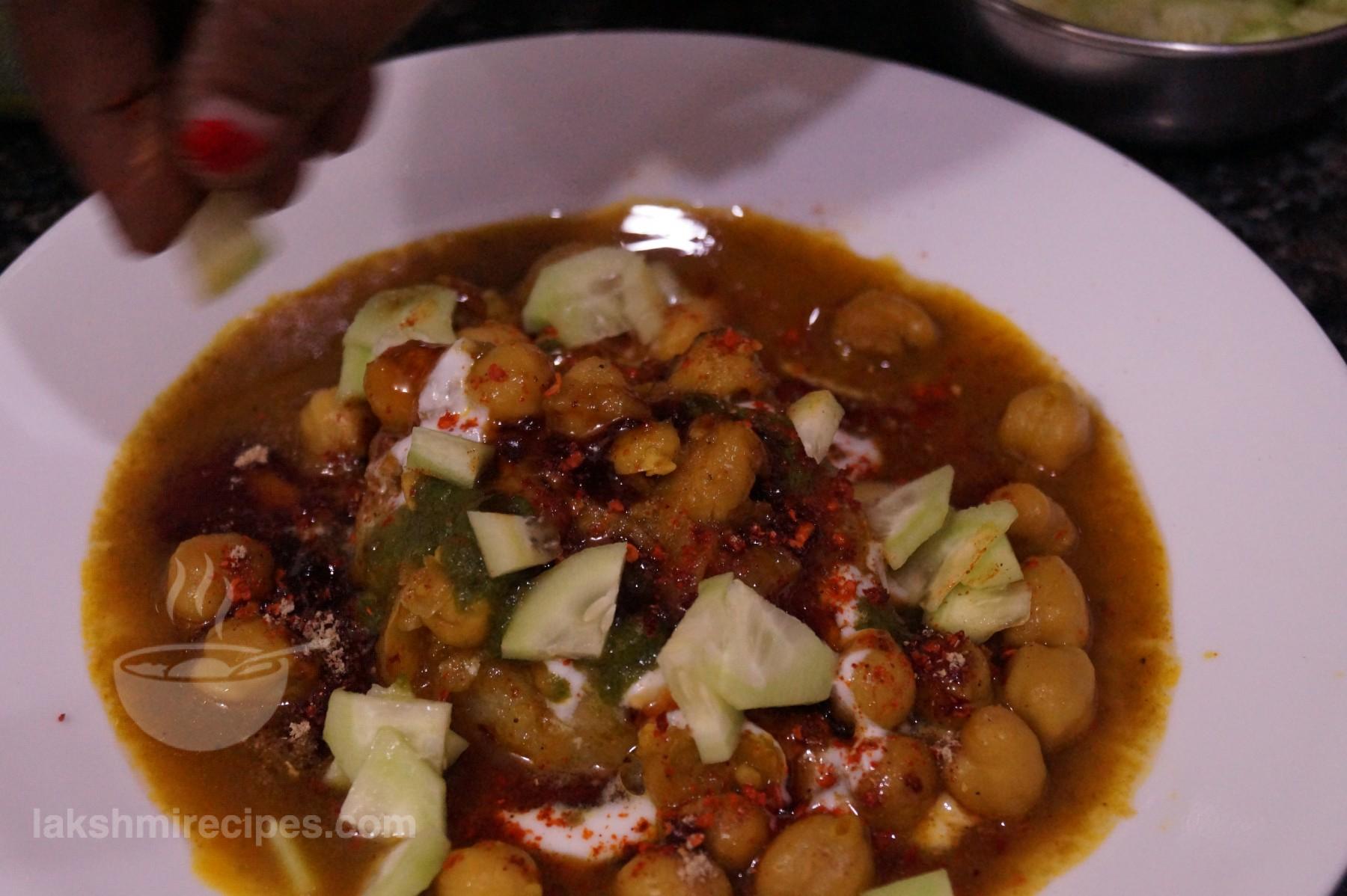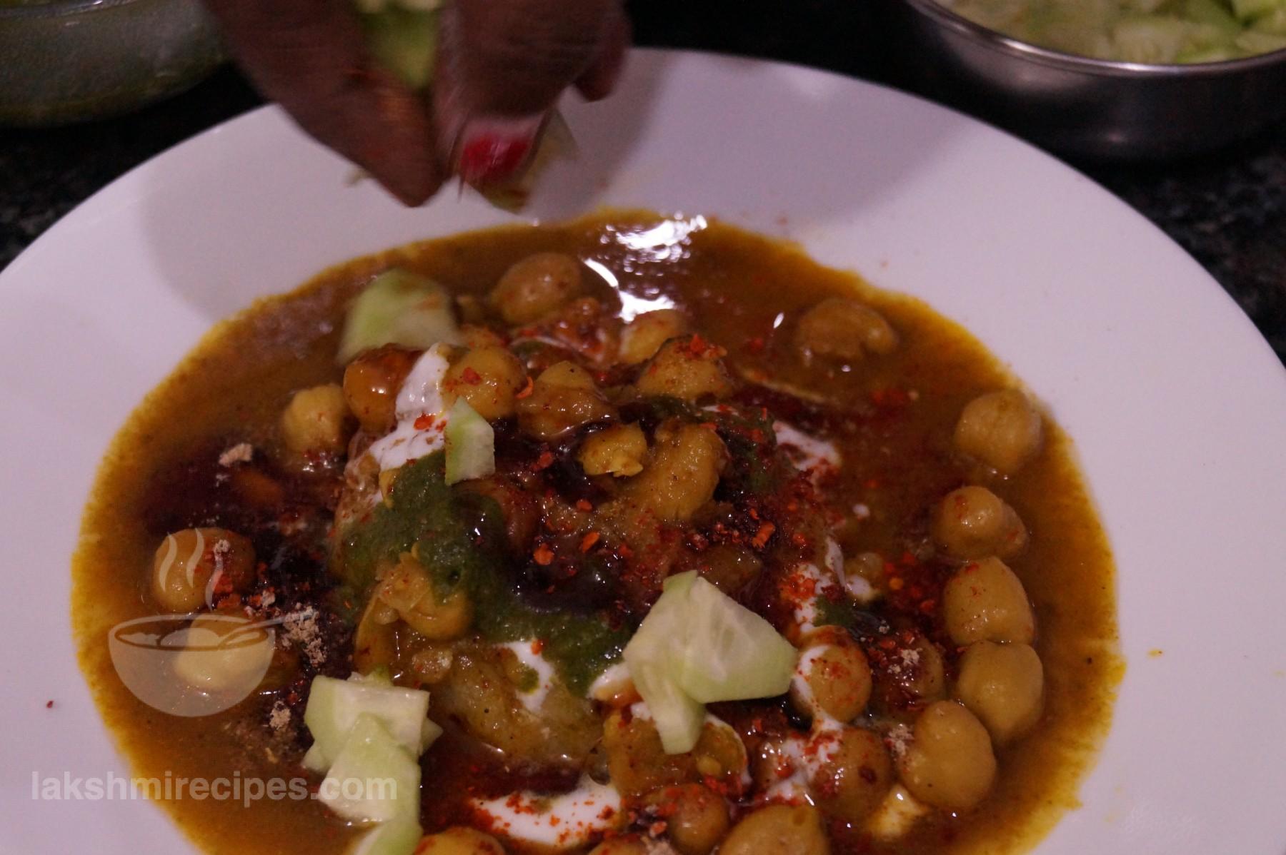 - On the tikki, first put a layer of some chhole masala curry.