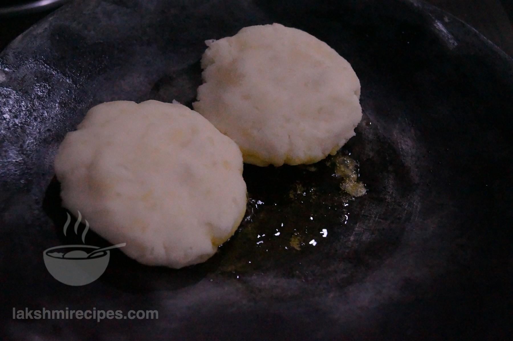 - While the oil gets warm, make round tikkis or cutlets of the potato mixture.