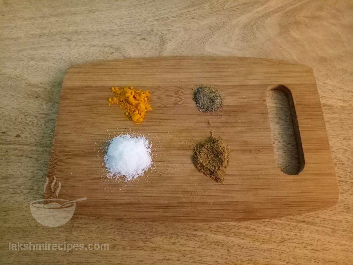 - Turmeric Powder - 1/2 tea spoon; (हल्दी पाउडर)