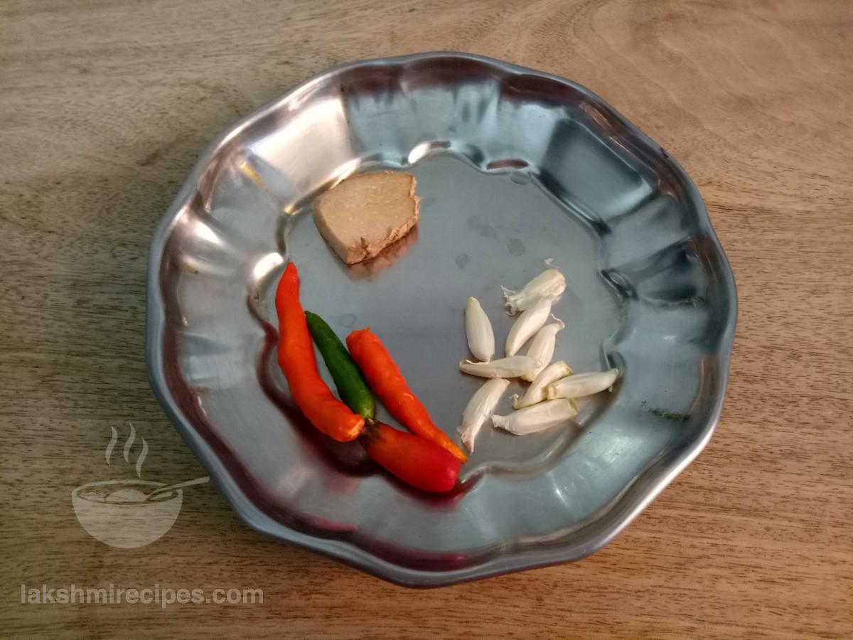 - मिक्सर जार में अदरक, लहसुन की कली और हरी मिर्च डालें और सामग्री को पीस कर एक दरदरा मिश्रण तैयार कर लें।