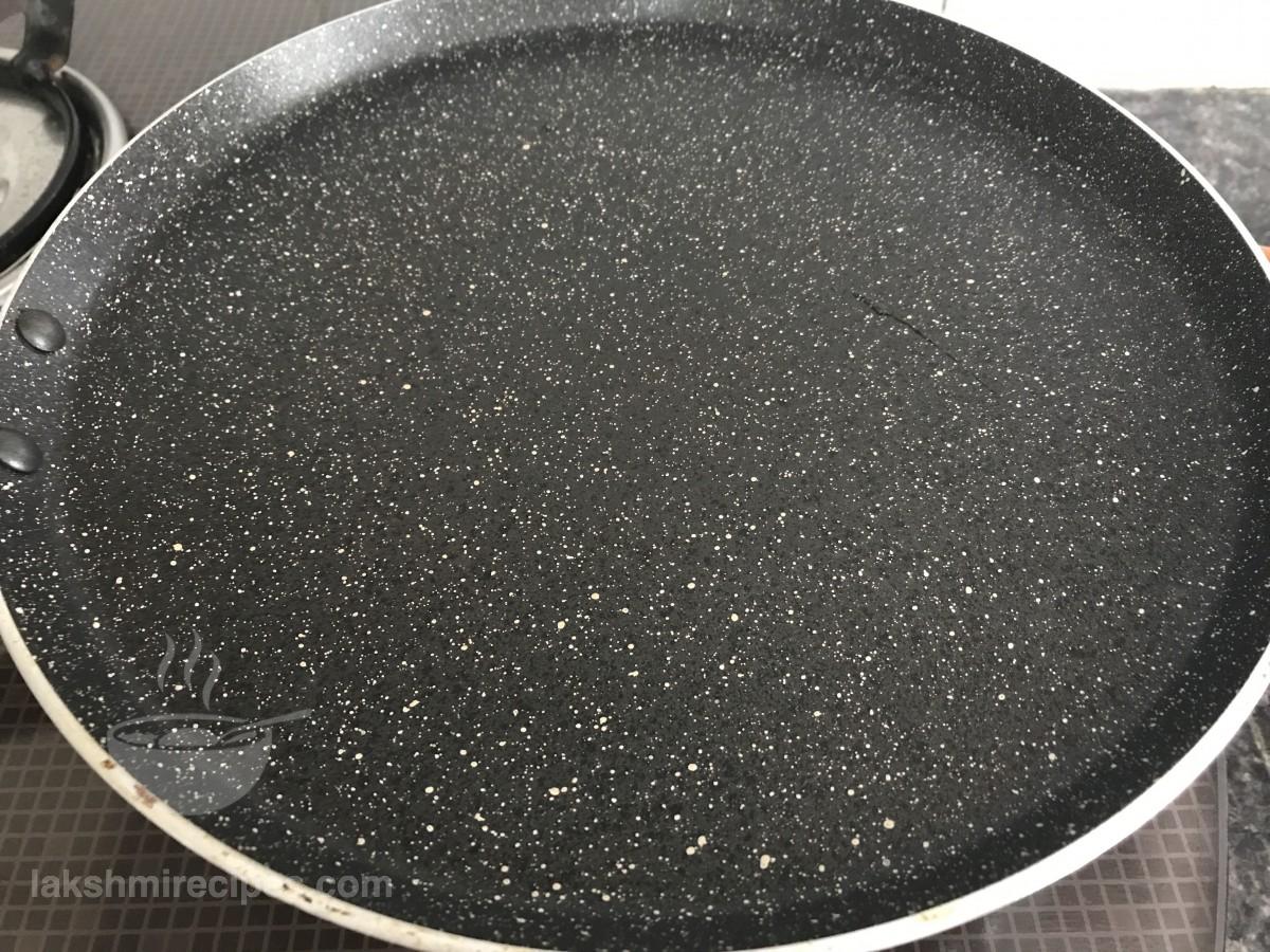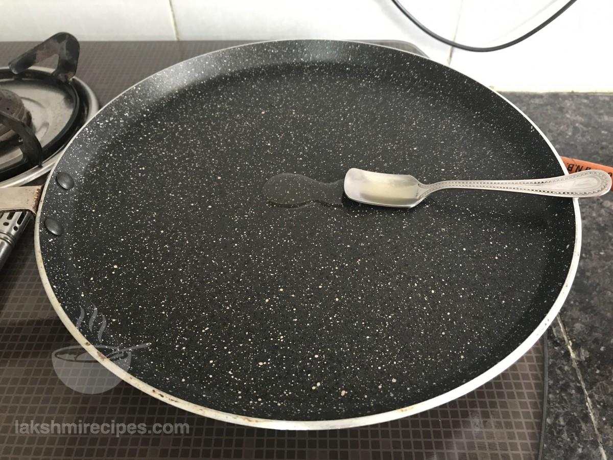 - Now heat a non-stick tawa and grease it with 1/2 tea spoon refined oil.