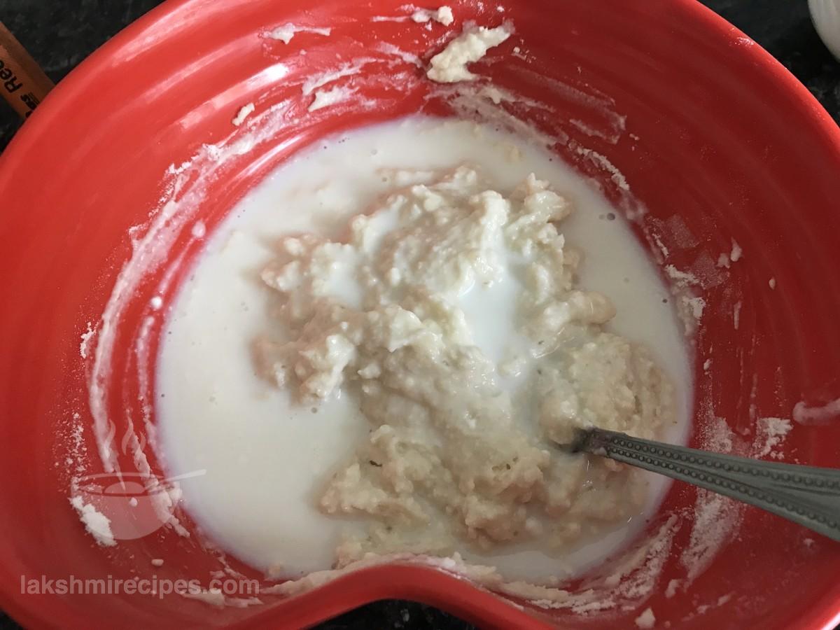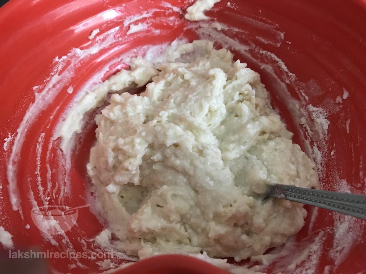 - सारी सामग्री को एक साथ मिलाएं और ध्यान रखें कि रहें कोई गांठ ने बनें।