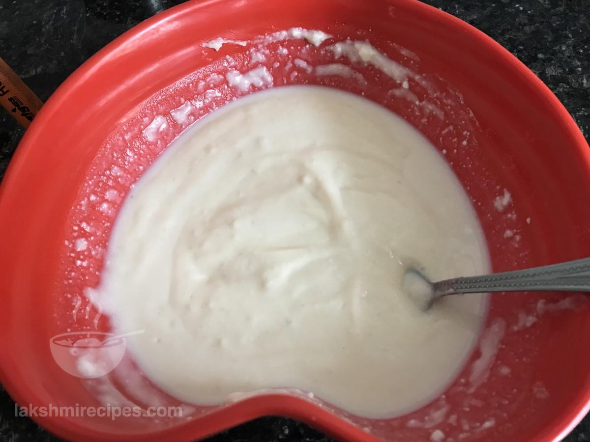 - Mix the ingredients together and be careful so that no lumps are formed.