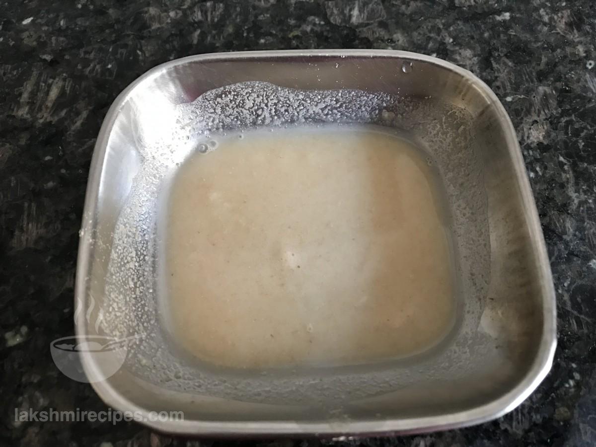 - Then take 1 table spoon all purpose flour or maida in a bowl containing 1/2 small cup water. Dissolve the all purpose flour or maida in water.