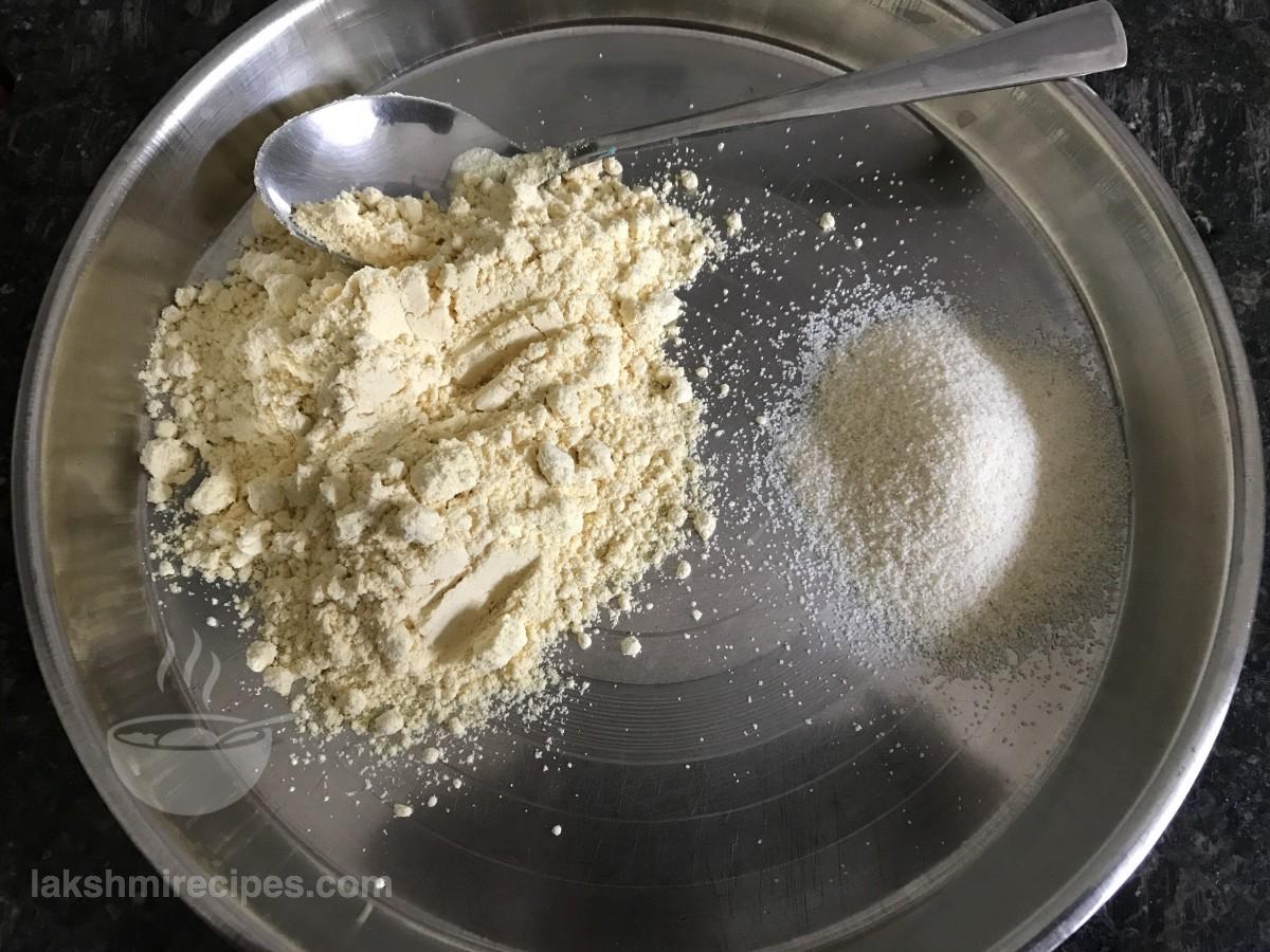 - Then add gram flour, semolina, salt, caraway seeds, turmeric powder, cumin seeds powder and black pepper powder to the above mixture. Mix all ingredients nicely with your hands.