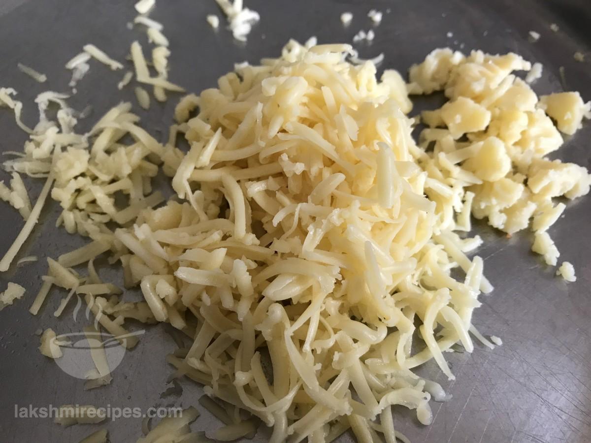 - Now add some grated cheese over the cooking pancake and when the cheese appears to be melting then turn off flame and remove the pancake to a plate to be served hot. If you have a big size non-stick pan then you can prepare 3-4 pancakes at one time.