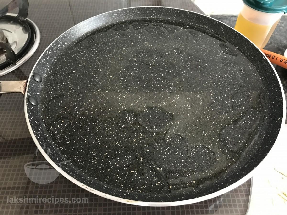 - Now heat a non-stick pan and grease it with 1/2 tea spoon refined oil.