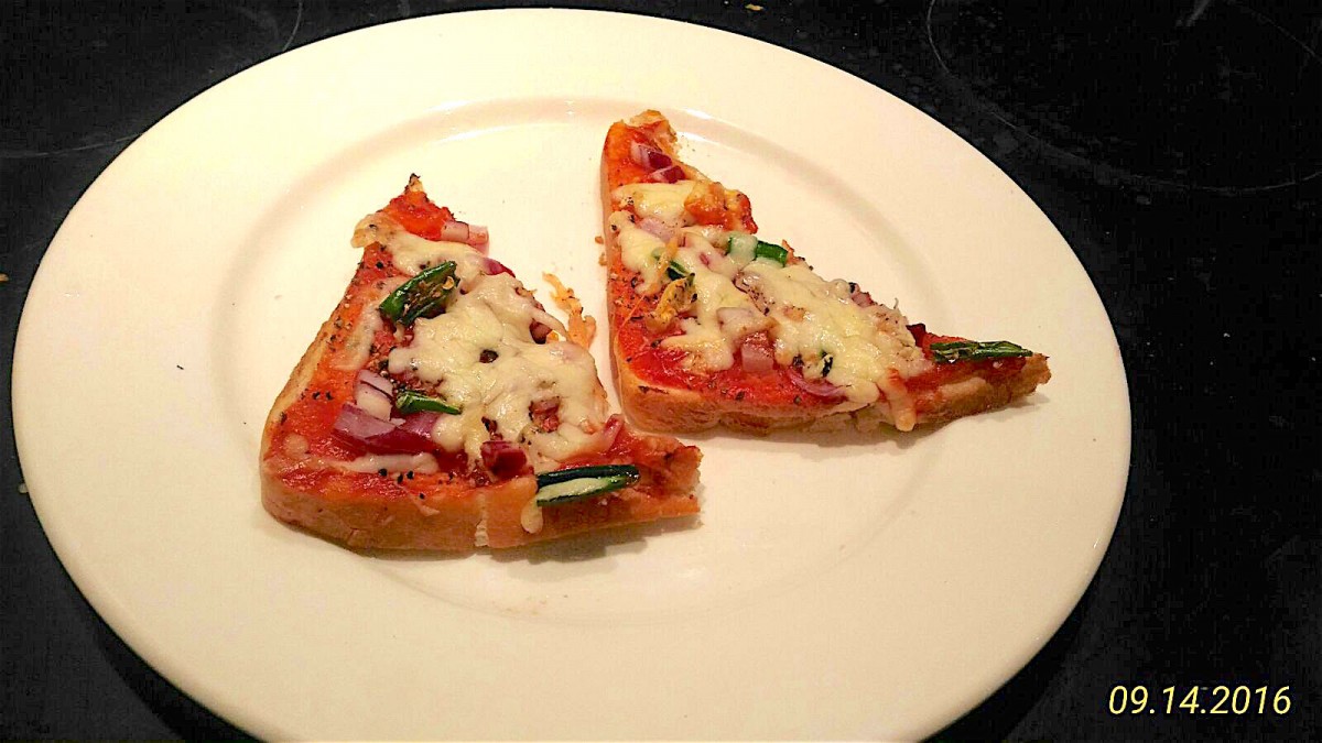 - Transfer the grilled bread slices to a plate. Cut them into two triangular halves and serve in a beautiful dish.