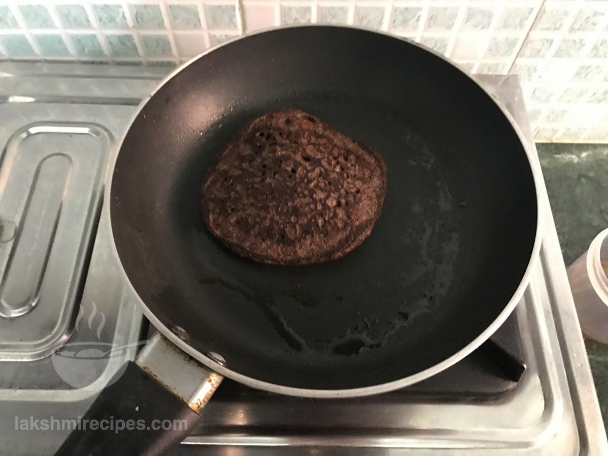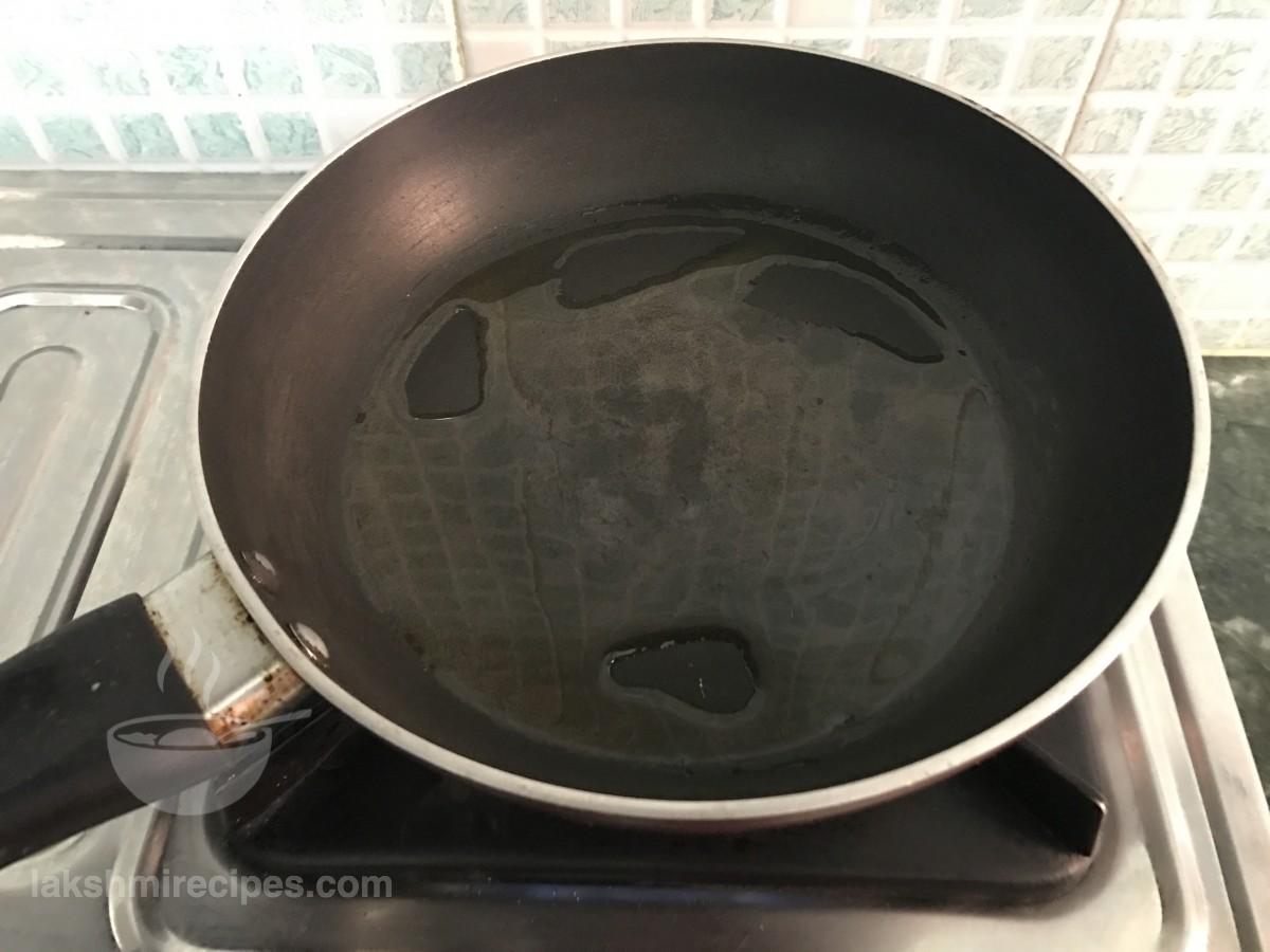 - Now heat a non-stick pan and grease it with 1/2 tea spoon refined oil. When the pan is heated completely then lower the flame to medium level.