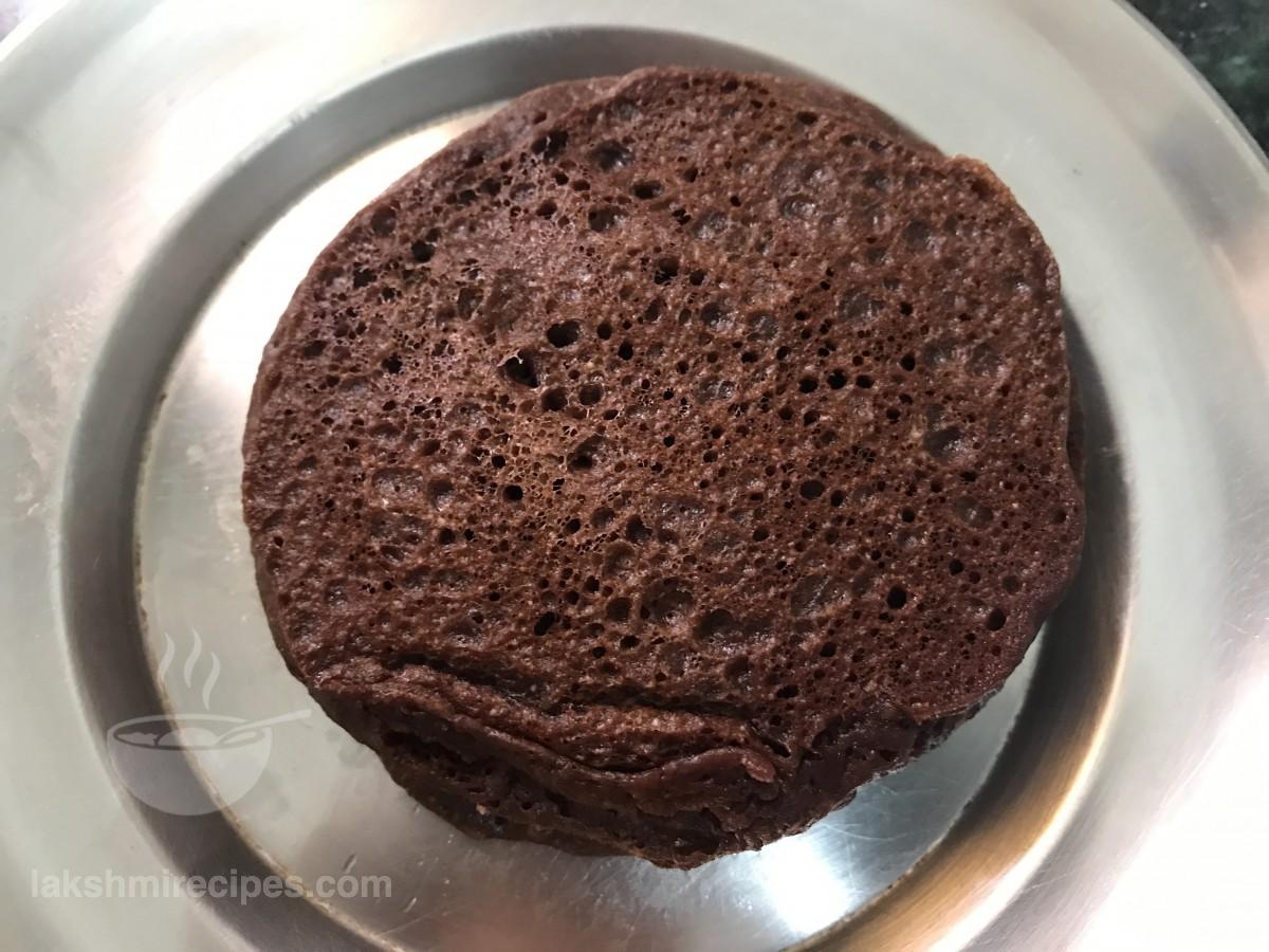 - अब पके हुए चॉकलेट पैनकेक को एक प्लेट में निकाल लें। इसी तरीके से शेष बैटर के चॉकलेट पेनकेक्स तैयार करें और