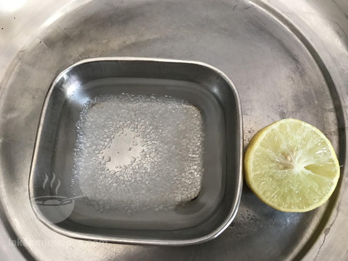 - Now take some water (5-6 table spoon) in a bowl and add lemon juice to it.