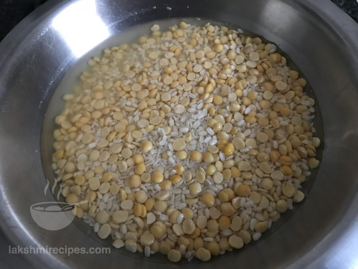 - चना दाल और उरद दाल को भी साफ पानी से धो लें और उन्हें उसी बर्तन में डालकर रखें जिसमें चावल रखा गया है।