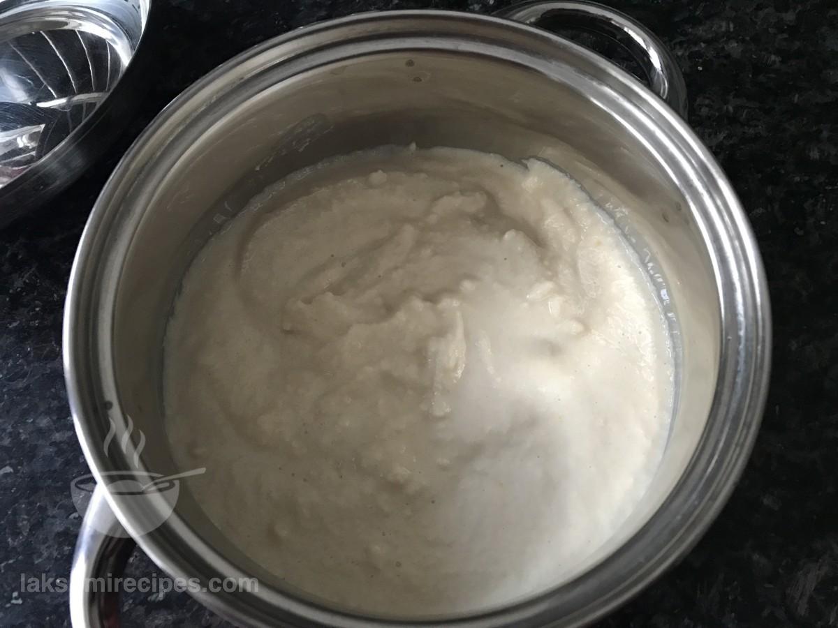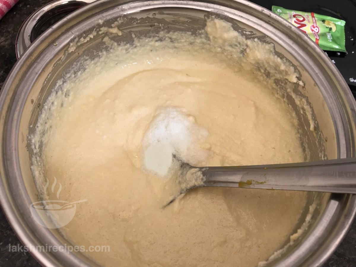 - इस बैटर को एक बड़े पतीले में निकाल लें और इस पतीले को एक ढक्कन से ढक दें। बैटर में खमीर उठने केलिए, बैटर को 10-12 घंटों के लिए अलग रख दें।
