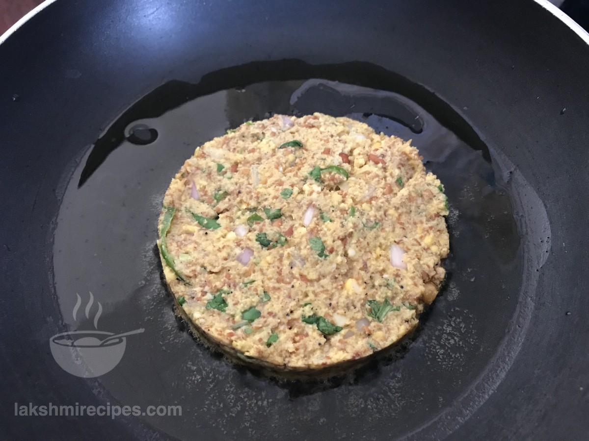 - Then heat a tawa or a non-stick pan and grease it with some oil.