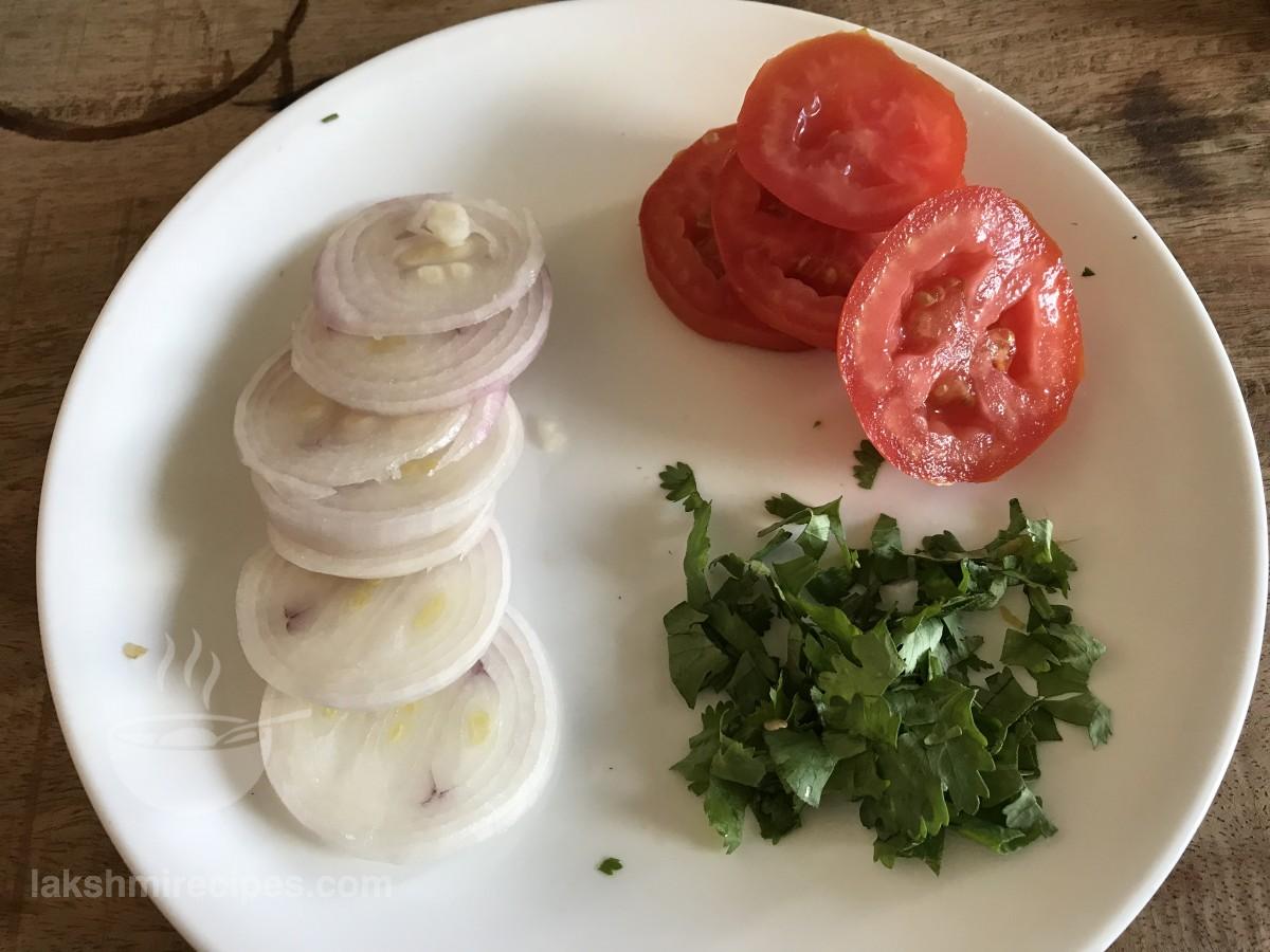 - Tomato or Tamatar - 1 medium size, cut into thin round slices