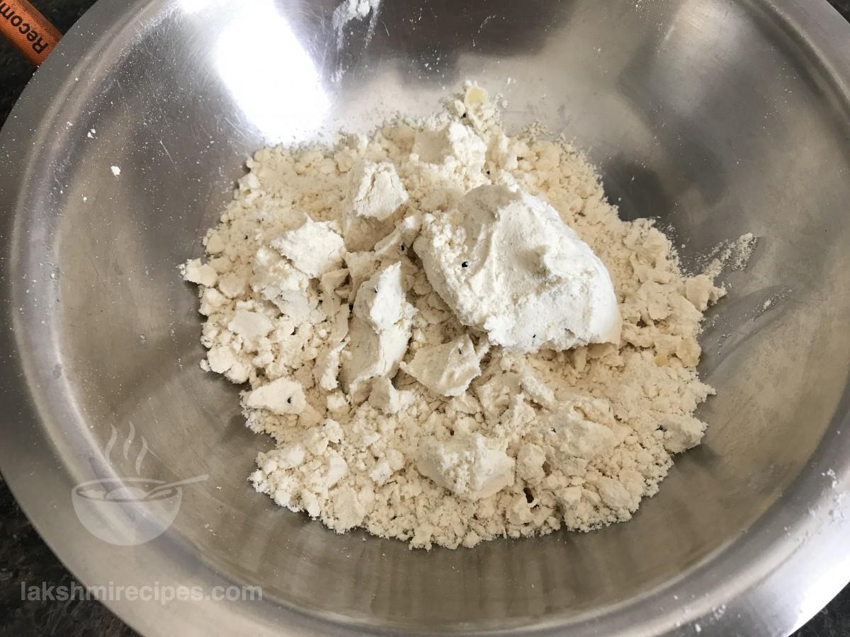 - Now add 3 table spoon refined oil to this dry mixture. Mix as if forming a dough.