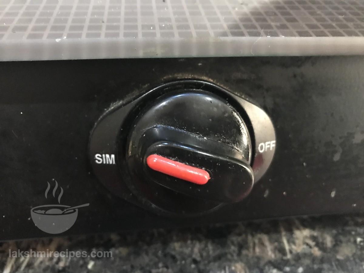 - आँच को कम कर दें और कढ़ाई को ढक दें। सामग्री को 5 मिनट तक इसी तरह से पकने दें। 5 मिनट के बाद ढक्कन हटा दें और गैस को बंद कर दें। सामग्री को थोड़ा ठंडा होने दें।
