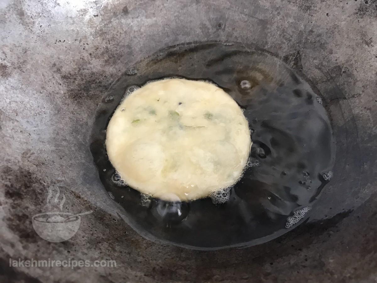 - फिर बेली हुई कचौरी को तलने केलिए सावधानी से गरम तेल में डालें और दोनों तरफ सुन्हरा भूरा होने तक तलें। हरे मटर की कचौरी को सावधानी से दूसरी तरफ तलने के लिए पलटें। तैयार हरे मटर की कचौरी को एक प्लेट में निकाल लें और शेष हरे मटर की कचौरी भी इसी तरह से तैयार करें।